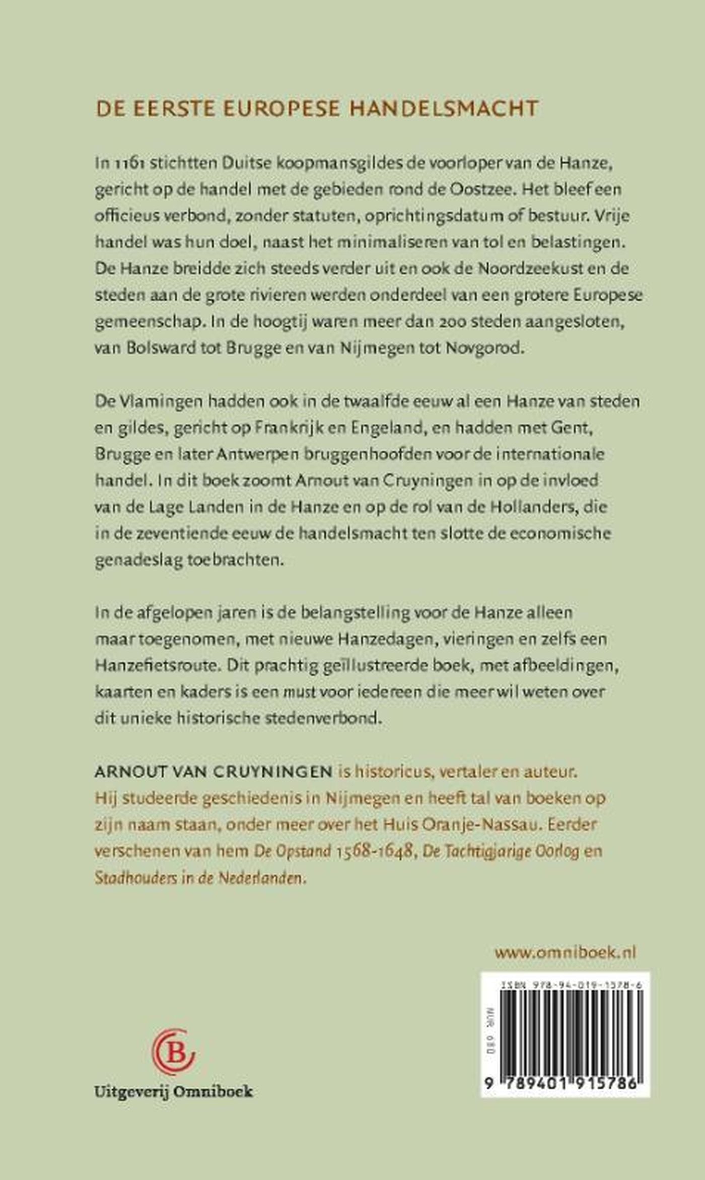Arnout van Cruyningen vertelt in ‘De Hanze’ over het Europese handelarengilde dat zes eeuwen lang wist te overleven. In 1161 stichtten Duitse koopmansgildes de voorloper van de Hanze, gericht op de handel met de gebieden rond de Oostzee. Door vrijhandel toe te staan, bracht het Hanzeverbond veel economische bloei in Noordwest-Europa. De Hanze ontwikkelde zich tot een stedenverbond, waarbij in de hoogtijdagen meer dan tweehonderd steden aangesloten waren, ook steden uit de Noordelijke en Zuidelijke Nederlanden. Topauteur Arnout van Cruyningen focust in ‘De Hanze’ op de rol van de Lage Landen binnen de handelsmacht en hoe de Nederlanders de Hanze de economische genadeslag toebrachten.