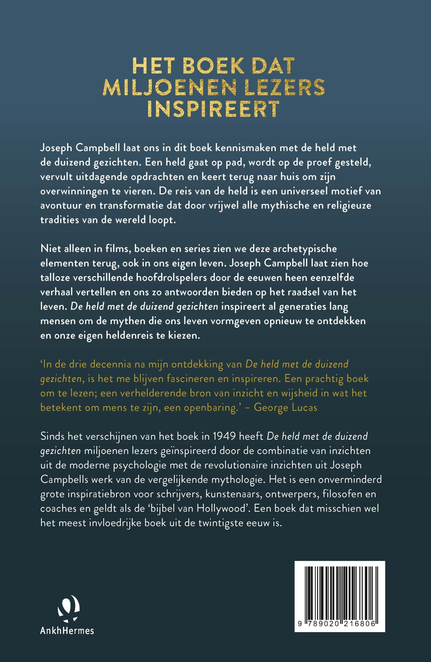 Sinds het verschijnen van het boek in 1949 heeft De held met de duizend gezichten miljoenen lezers geïnspireerd door de combinatie van inzichten uit de moderne psychologie met de revolutionaire inzichten uit Joseph Campbells werk van de vergelijkende mythologie. Het is een onverminderd grote inspiratiebron voor schrijvers, kunstenaars, ontwerpers, filosofen en coaches en geldt als de 'bijbel van Hollywood'. Een boek dat misschien wel het meest invloedrijke boek uit de twintigste eeuw is. Een klassieker in een prachtige nieuwe jas!