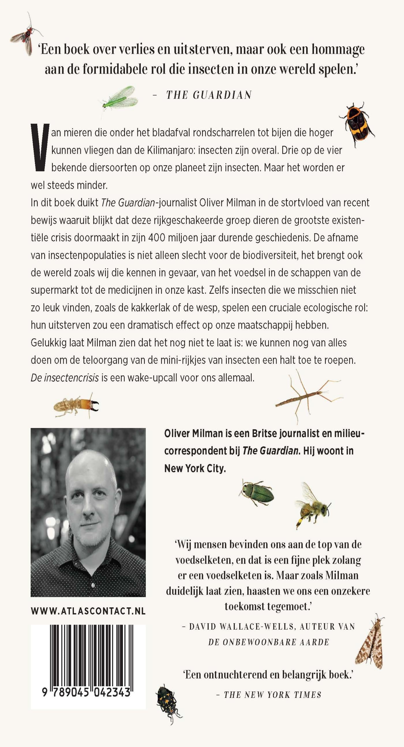 Milman legt niet alleen uit wat de oorzaak is van de grootschalige ineenstorting van de insectenwereld, maar laat ook overtuigend zien waarom deze achteruitgang zo’n bedreiging vormt voor ons allemaal. Hij onderzoekt deze verborgen noodsituatie, met het argument dat de gevolgen ervan zelfs die van de klimaatverandering zouden kunnen evenaren. Voor het grootste deel van onze landbouw zijn we afhankelijk van insectenbestuiving. Ze zijn een belangrijke voedselbron voor vogels en vissen, en ze vormen een belangrijke steunpilaar voor het leven op aarde, vooral dat van ons.