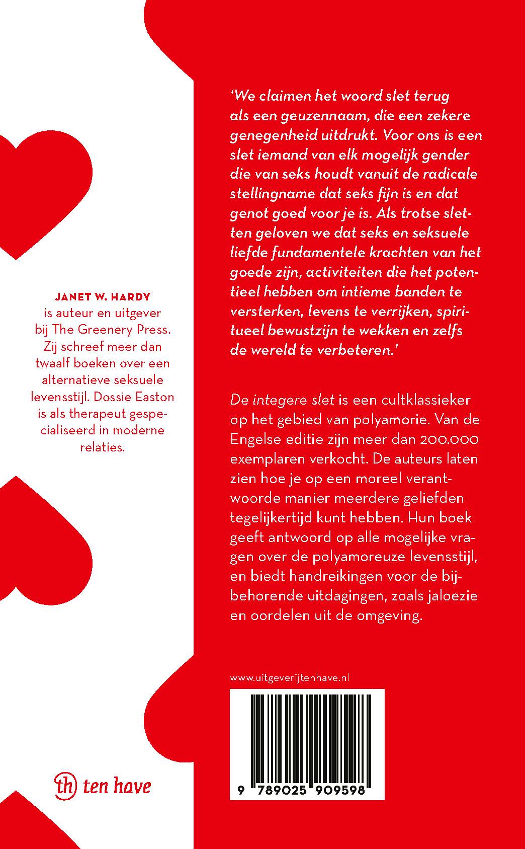 De integere slet is een cultklassieker op het gebied van polyamorie. Van de Engelse editie zijn meer dan 200.000 exemplaren verkocht. De auteurs laten zien hoe je op een moreel verantwoorde manier meerdere geliefden tegelijkertijd kunt hebben. Hun boek geeft antwoord op alle mogelijke vragen over de polyamoreuze levensstijl, en biedt handreikingen voor de bijbehorende uitdagingen, zoals jaloezie en oordelen uit de omgeving.