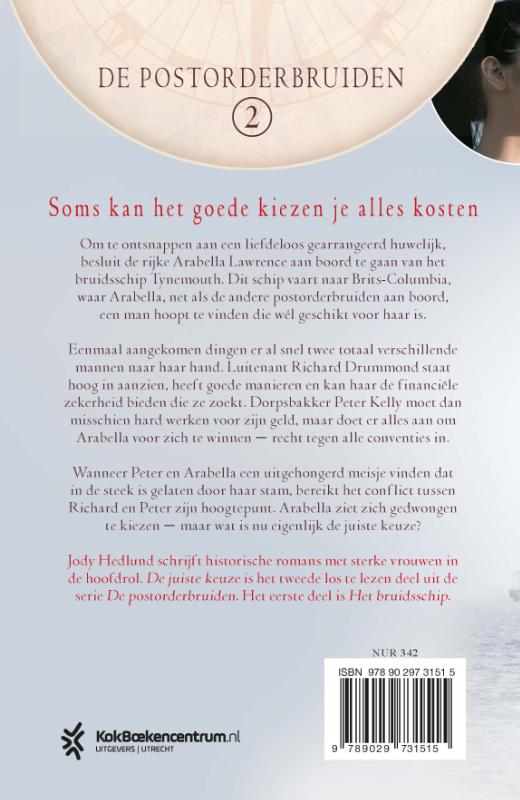 ‘De juiste keuze’ van Jody Hedlund is een rijke historische roman over morele dilemma’s tegen de achtergrond van 19e-eeuws Canada. Om te ontsnappen aan een liefdeloos gearrangeerd huwelijk, besluit Arabella Lawrence als postorderbruid naar Brits-Columbia te varen. Daar aangekomen dingen er al snel twee totaal verschillende mannen naar haar hand. Luitenant Richard Drummond staat hoog in aanzien en kan haar de bescherming geven die ze nodig heeft. Peter Kelly heeft als bakker weinig te bieden, maar doet er alles aan om Arabella’s hart te veroveren. Daarnaast verschillen de twee mannen ook nog eens van mening over de behandeling van de inheemse bevolking tijdens een uitbraak van de pokken. Arabella wil graag het juiste doen, maar wat is dat eigenlijk?