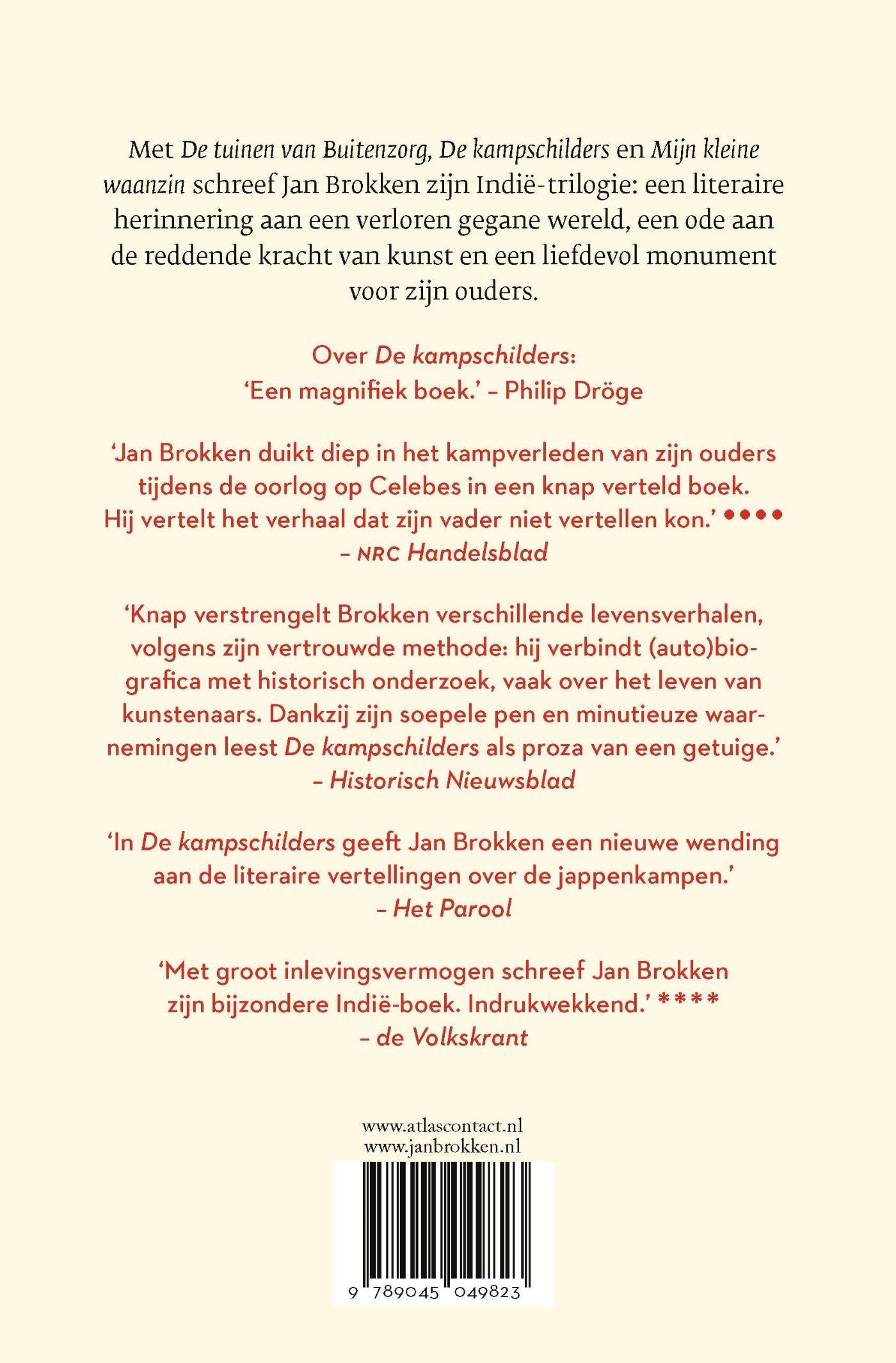 In ‘De Kampschilders’ vertelt Jan Brokken het verhaal van Willem en Maria Hofker en Rudolf Bonnet, die tijdens de Tweede Wereldoorlog in hetzelfde jappenkamp terechtkwamen als zijn vader Han en moeder Olga. Ingenieus verweeft hij hun verhalen. Brokken schetst het rijke culturele leven in de jaren dertig op Bali, waar kunstenaars uit de hele wereld naartoe trokken en geïnspireerd en betoverd werden door de Balinese cultuur. Aan die wereld kwam een eind toen de Tweede Wereldoorlog uitbrak. De voortdurende angst in het kamp maakt hij indringend invoelbaar, maar dit verhaal laat ook zien hoe kunst in onmenselijke omstandigheden een redding kan zijn.