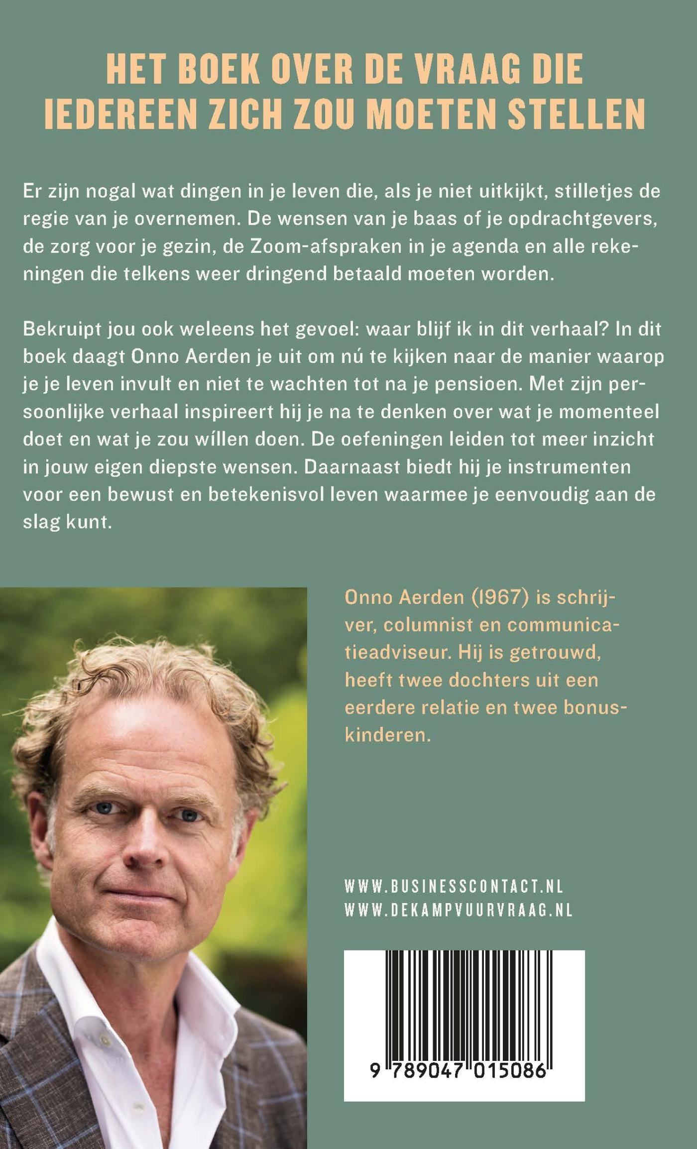 Bekruipt jou ook weleens het gevoel: waar blijf ik in dit verhaal? In ‘De kampvuurvraag’ daagt Onno Aerden je uit om nú te kijken naar de manier waarop je je leven invult en niet te wachten tot na je pensioen. Met zijn persoonlijke verhaal inspireert hij je na te denken over wat je momenteel doet en wat je zou wíllen doen. De oefeningen leiden tot meer inzicht in jouw eigen diepste wensen. Daarnaast biedt hij je instrumenten voor een bewust en betekenisvol leven waarmee je eenvoudig aan de slag kunt.