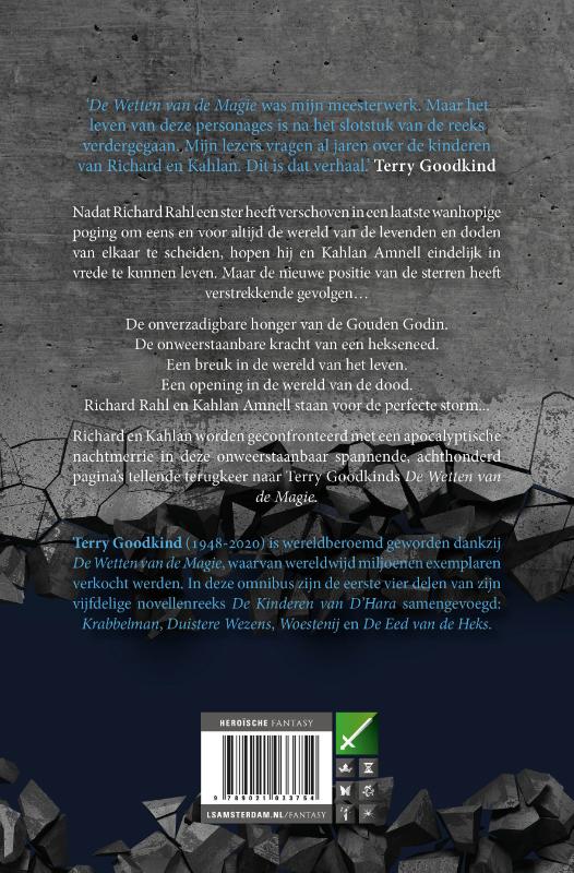 Richard Rahl en Kahlan Amnell worden geconfronteerd met een apocalyptische nachtmerrie in deze onweerstaanbaar spannende, angstaanjagende, bijna duizend pagina's tellende terugkeer naar Terry Goodkinds De Wetten van de Magie. Wereldwijd goed voor meer dan 26 miljoen verkochte exemplaren.
