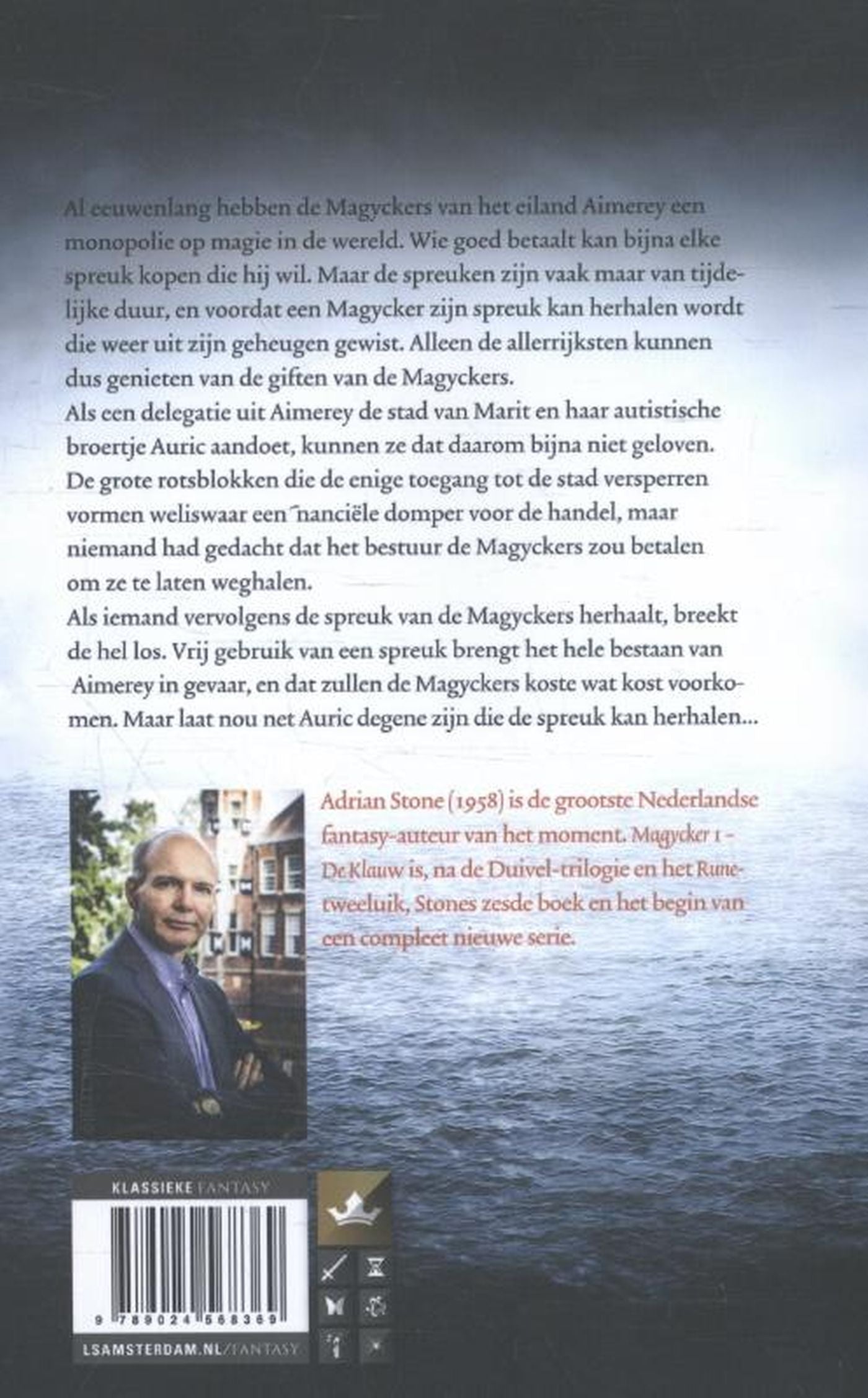 De Klauw is deel 1 van Adrian Stone’s nieuwe fantasy-reeks Magycker. Stone is bekend van de Duivel-trilogie en het Rune-tweeluik.
