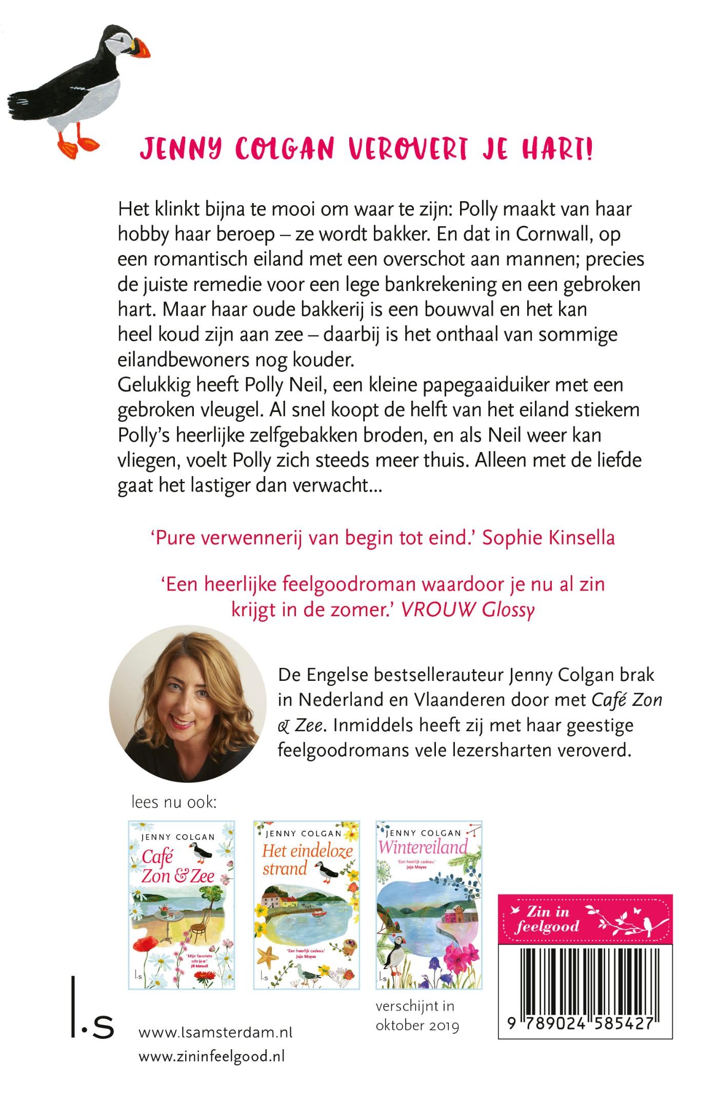 In De kleine bakkerij aan het strand van Jenny Colgan staat het leven van Polly Waterford op zijn kop. Haar relatie is op de klippen en haar bedrijf is ook nog eens failliet. Kortom, ze móét weg. Ze komt terecht op Mount Polbearne, een klein schiereiland voor de kust van Cornwall, in een appartement boven een verlaten winkel. Om haar zinnen te verzetten begint ze met het bakken van brood, dat al snel meer dan een hobby wordt.