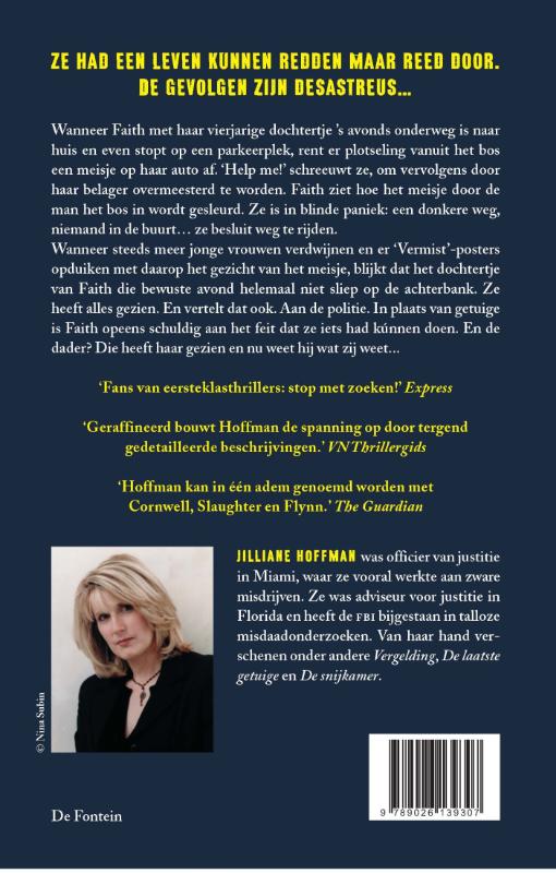 Wanneer steeds meer jonge vrouwen verdwijnen en er ‘Vermist’-posters opduiken met daarop het gezicht van het meisje, blijkt dat Faith’s dochtertje die bewuste avond helemaal niet sliep op de achterbank. Ze heeft alles gezien. En vertelt dat ook. Aan de politie. In plaats van getuige is Faith opeens schuldig aan het feit dat ze iets had kúnnen doen. En de dader? Die heeft haar misschien wel gezien en nu hij weet wat zij weet…