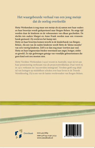 Hetty Werkendam (1930) is nog maar een meisje als zij samen met haar ouders en haar broertjes vanuit Amsterdam naar Bergen-Belsen wordt gedeporteerd. Daar brengt ze veertien lange maanden door in de kinderbarak. Als een van de oudste kinderen wordt Hetty ‘de kleine moeder’ van zo’n veertig kinderen. De iets oudere Margot en Anne Frank worden van de kinderbarak overgebracht naar de volwassenenbarak en overlijden. Hetty, haar broertjes en hun ouders blijven in leven en worden na de oorlog herenigd. ‘De kleine moeder van Bergen-Belsen’ is een aangrijpend relaas over Hetty’s verblijf in het concentratiekamp. Begin jaren vijftig is Hetty Verolme - dan al weduwe en moeder van een dochter - met haar familie naar Australië geëmigreerd, waar zij nog altijd lezingen geeft op middelbare scholen.