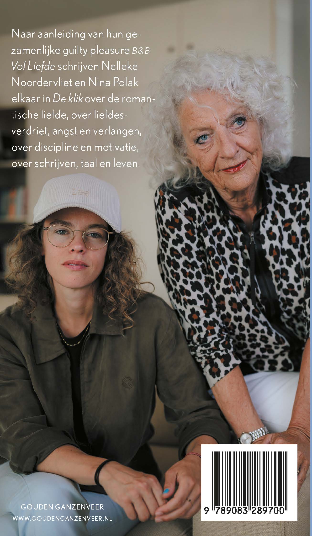 Naar aanleiding van hun gezamenlijke guilty pleasure B&B Vol Liefde schrijven Nelleke Noordervliet en Nina Polak elkaar in De klik over de romantische liefde, over liefdesverdriet, angst en verlangen, over discipline en motivatie, over schrijven, taal en leven.