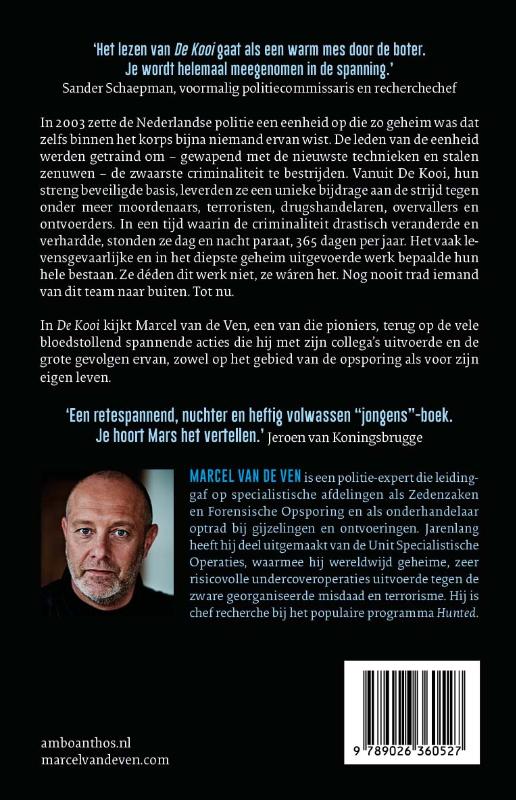 Nog nooit trad iemand van dit team naar buiten. Tot nu. In De Kooi kijkt Marcel van de Ven, een van die pioniers, terug op de vele bloedstollend spannende acties die hij met zijn collega’s uitvoerde en de grote gevolgen ervan, zowel op het gebied van de opsporing als voor zijn eigen leven.
