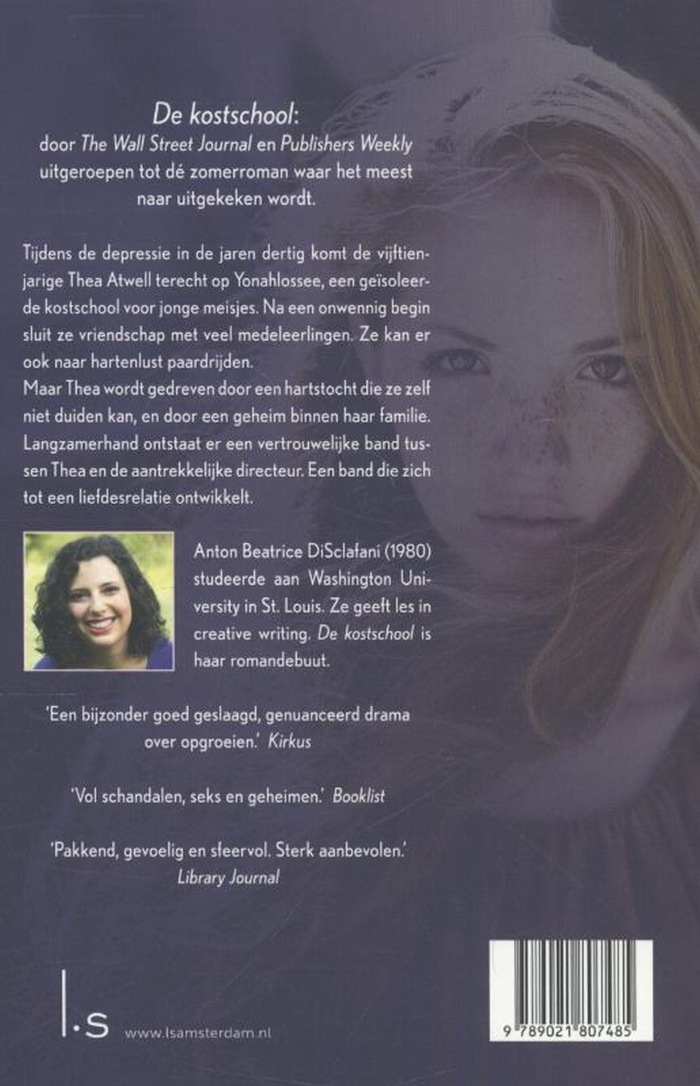 Anton Beatrice DiSclafani (1980) studeerde aan Washington University in St. Louis. Ze geeft les in creative writing. De kostschool is haar romandebuut.