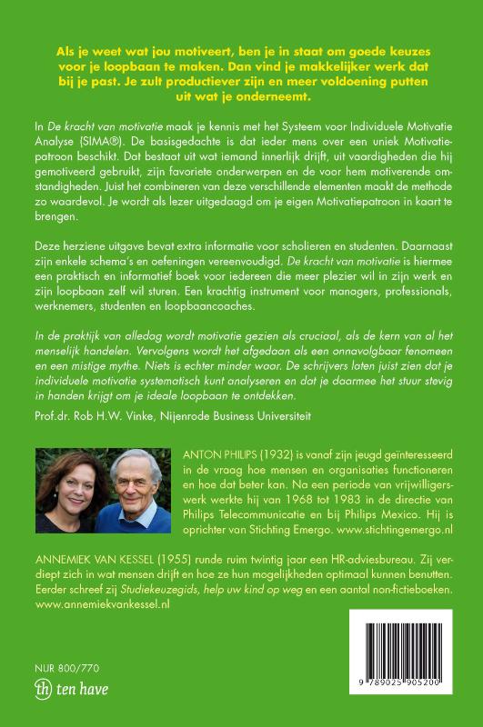 Deze herziene uitgave bevat extra informatie voor scholieren en studenten. Daarnaast zijn enkele schema’s en oefeningen vereenvoudigd. 'De kracht van motivatie' is hiermee een praktisch en informatief boek voor iedereen die meer plezier wil in zijn werk en zijn loopbaan zelf wil sturen. Een krachtig instrument voor managers, professionals, werknemers, studenten en loopbaancoaches.