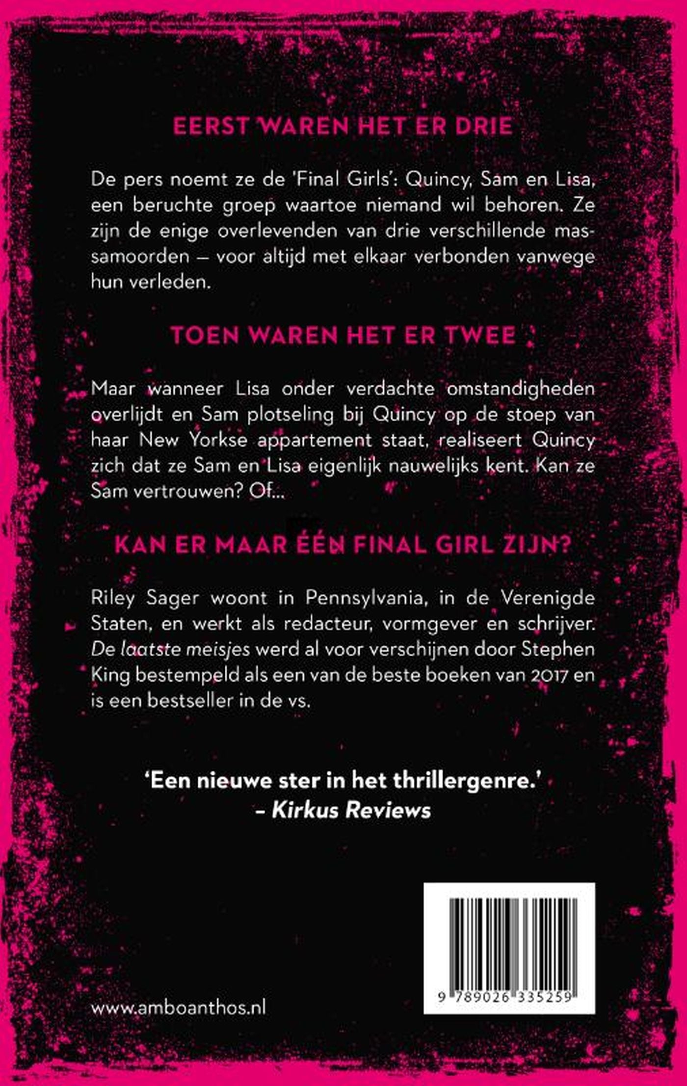 De pers noemt ze ‘The Final Girls’: Quincy, Sam en Lisa, een berucht groepje waar niemand bij wil horen. De enige overlevenden van drie verschillende massamoorden. Ze zijn voor altijd met elkaar verbonden, vanwege hun verleden. Maar wanneer Lisa onder verdachte omstandigheden overlijdt en Sam plotseling bij Quincy op de stoep staat, moet Quincy toegeven dat ze Sam en Lisa eigenlijk nauwelijks kent. Moet ze Sam vertrouwen? Of kan er maar één Final Girl zijn?
