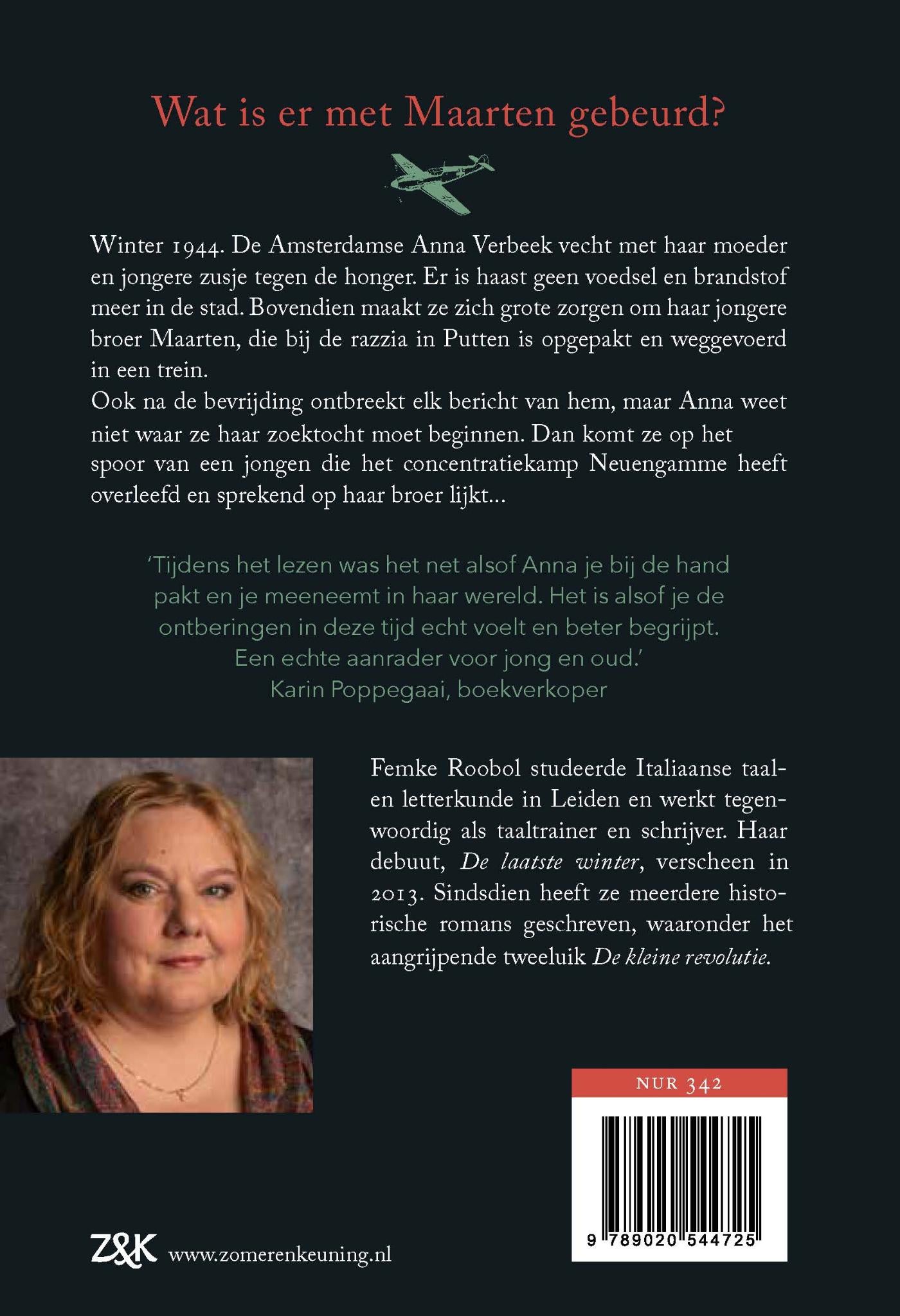 Winter 1944. De Amsterdamse Anna Verbeek in ‘De laatste winter’ van Femke Roobol vecht met haar moeder en jongere zusje tegen de honger. Er is haast geen voedsel en brandstof meer in de stad. Bovendien maakt ze zich grote zorgen om haar jongere broer Maarten, die bij de razzia in Putten is opgepakt en weggevoerd in een trein. Ook na de bevrijding ontbreekt elk bericht. Maar dan komt Anna op het spoor van een jongen die het concentratiekamp Neuengamme heeft overleefd en sprekend op haar broer lijkt... Wat is er met Maarten gebeurd? ‘De laatste winter’ van Femke Roobol is een aangrijpend verhaal van de zoektocht van een jonge vrouw naar haar verdwenen broer.