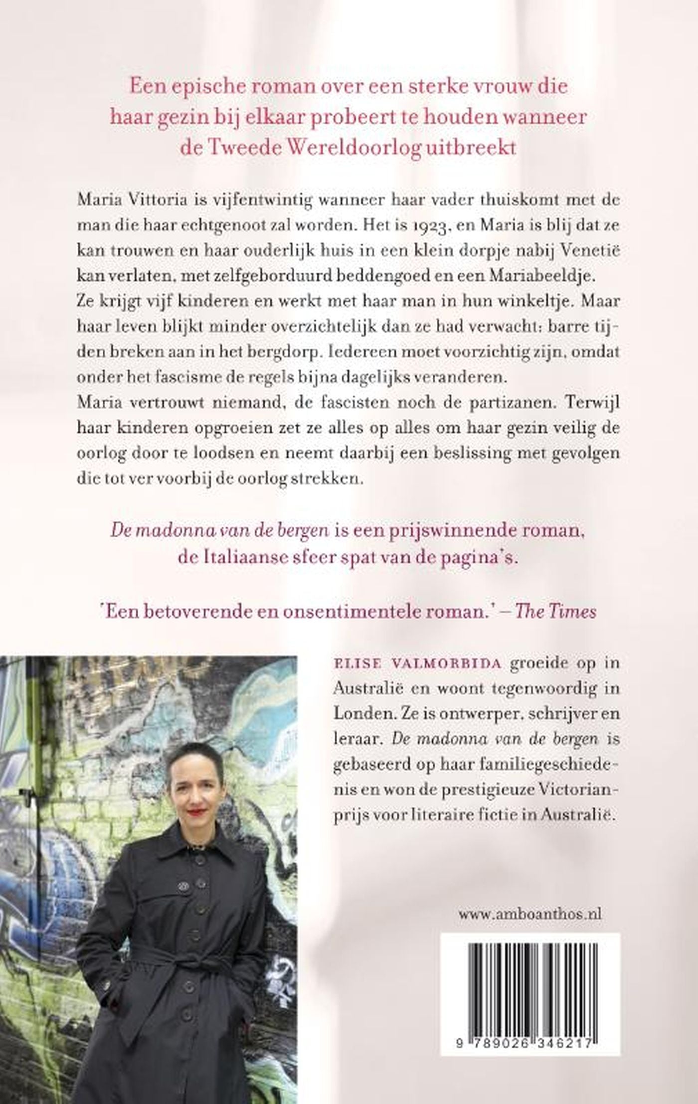 De madonna van de bergen van Elise Valmorbida is een meeslepende roman vol couleur locale over een vrouw en haar gezin op het Italiaanse platteland rond de Tweede Wereldoorlog.