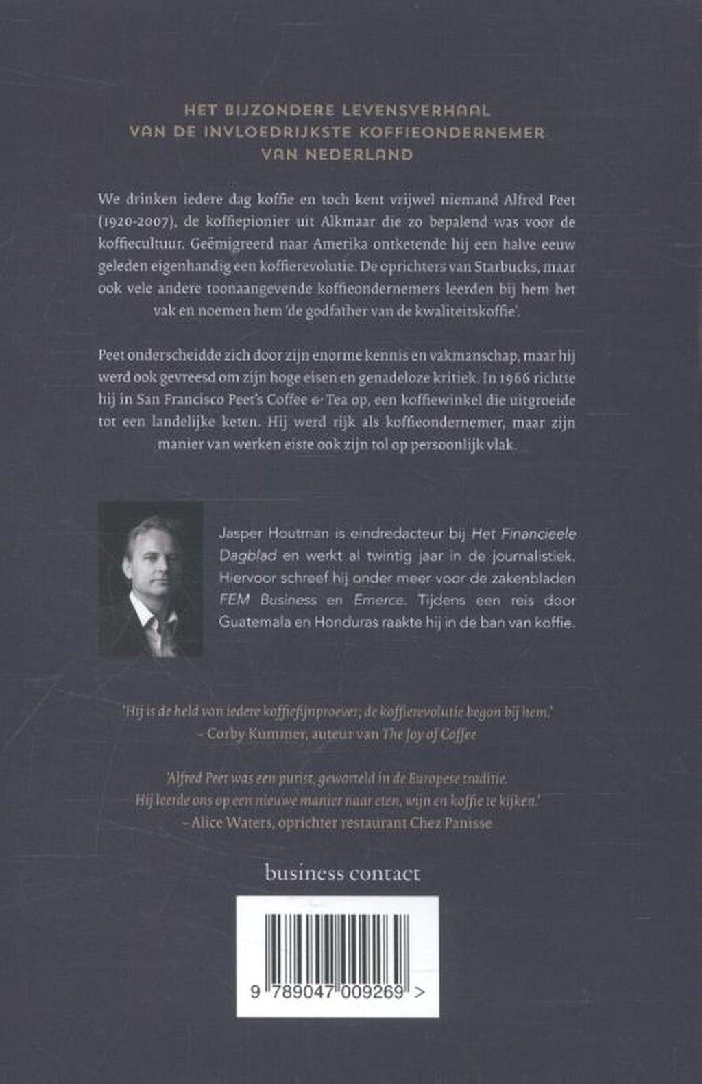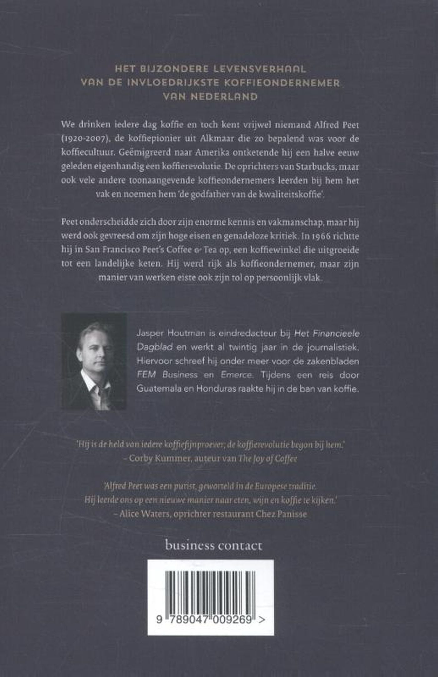 We drinken iedere dag koffie en toch kent vrijwel niemand Alfred Peet (1920-2007), de koffiepionier uit Alkmaar die zo bepalend was voor de koffiecultuur. Geëmigreerd naar Amerika ontketende hij een halve eeuw geleden eigenhandig een koffierevolutie. De oprichters van Starbucks, maar ook vele andere toonaangevende koffieondernemers leerden bij hem het vak en noemen hem ‘de godfather van de kwaliteitskoffie’.