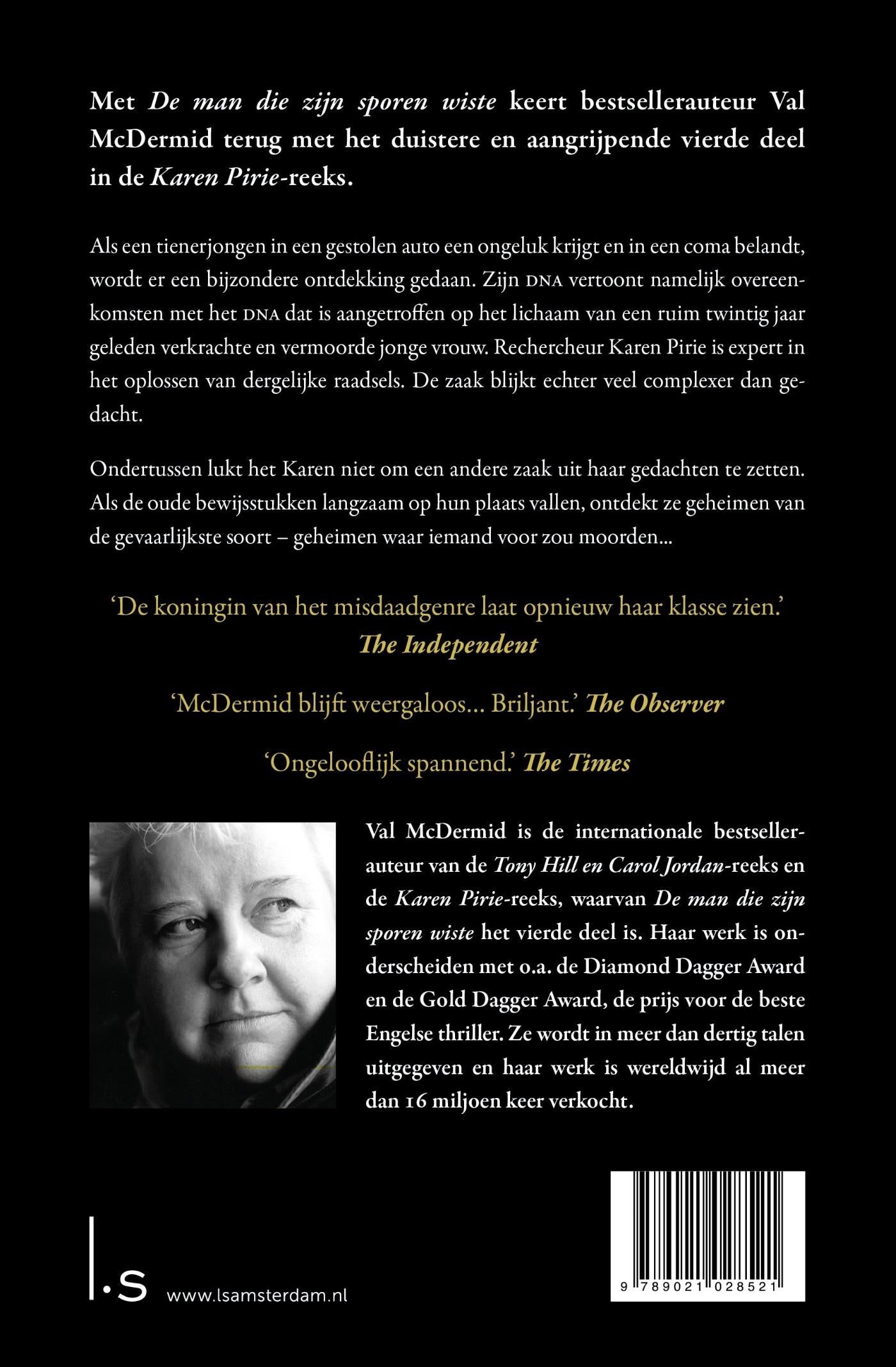Als in De man die zijn sporen wiste, het vierde deel in de Karen Pirie-thrillerreeks van Val McDermid, een tienerjongen in een gestolen auto een ongeluk krijgt en in een coma belandt, wordt er een bijzondere ontdekking gedaan.