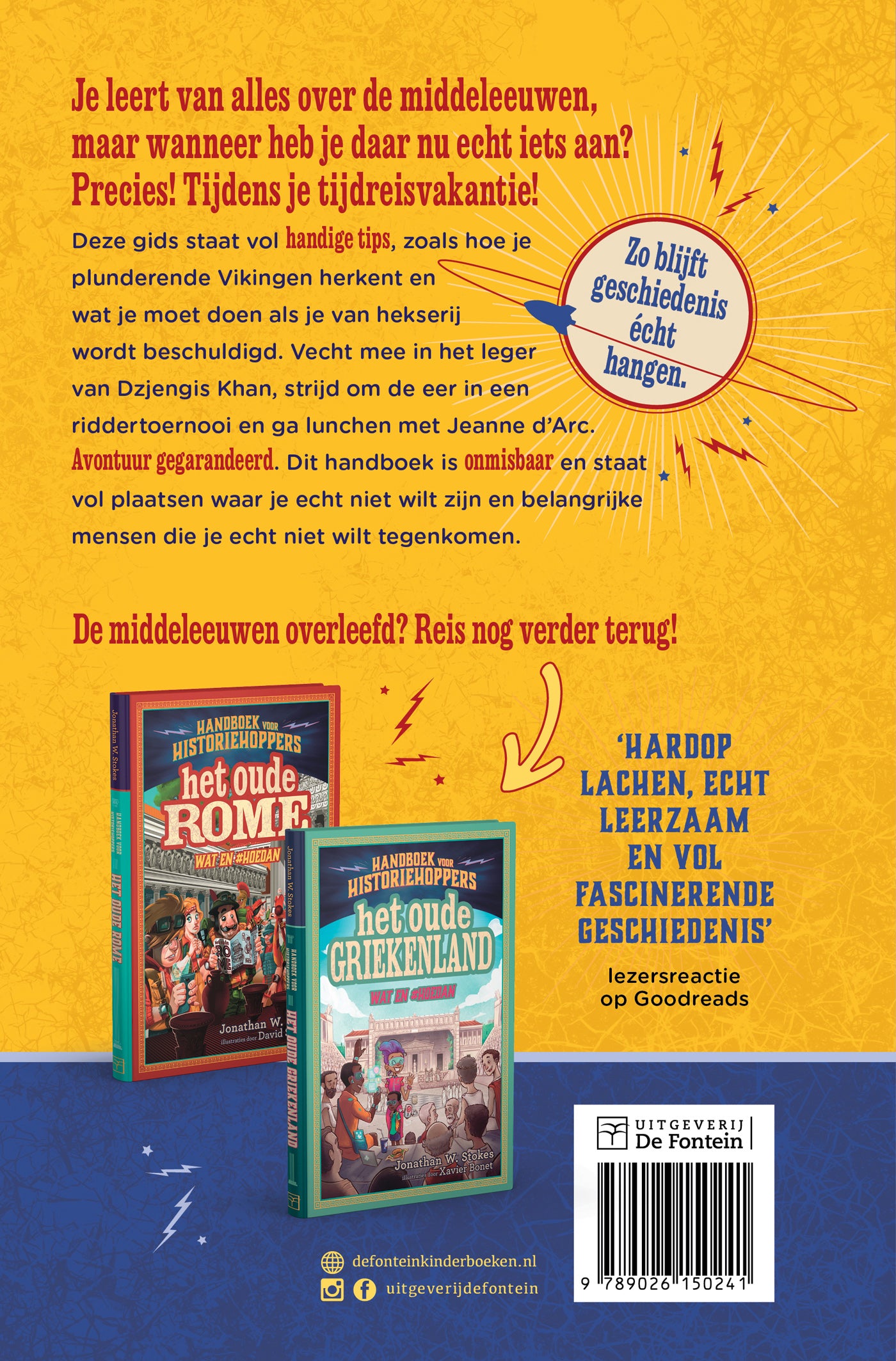 De middeleeuwen is een supergrappige gids in de verhalende non-fictieserie Handboek voor historiehoppers van Jonathan W. Stokes, met illustraties van Xavier Bonet. Vol toffe infographics, handige feiten en slimme tips, geschikt voor nieuwsgierige lezers van 9 jaar en ouder.
