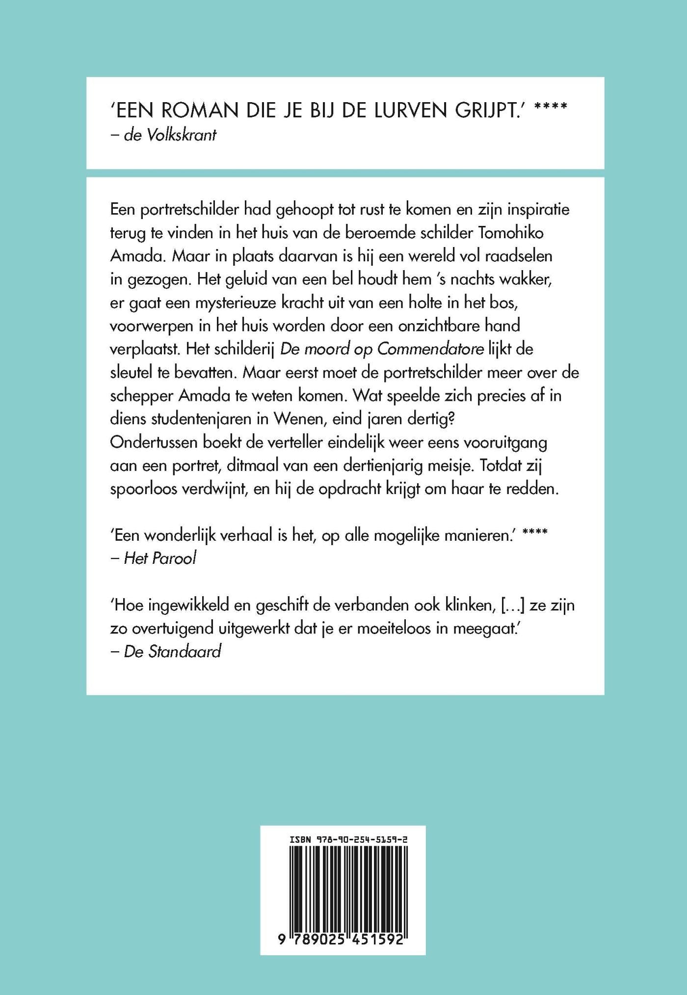 Een portretschilder had gehoopt tot rust te komen en zijn inspiratie terug te vinden in het huis van de beroemde schilder Tomohiko Amada. Maar in plaats daarvan is hij een wereld vol raadselen in gezogen. Het geluid van een bel houdt hem ’s nachts wakker, er gaat een mysterieuze kracht uit van een holte in het bos, voorwerpen in het huis worden door een onzichtbare hand verplaatst. Het schilderij ‘De moord op Commendatore’ lijkt de sleutel te bevatten. Maar eerst moet de portretschilder meer over de schepper Amada te weten komen. Wat speelde zich precies af in diens studentenjaren in Wenen, eind jaren dertig?
