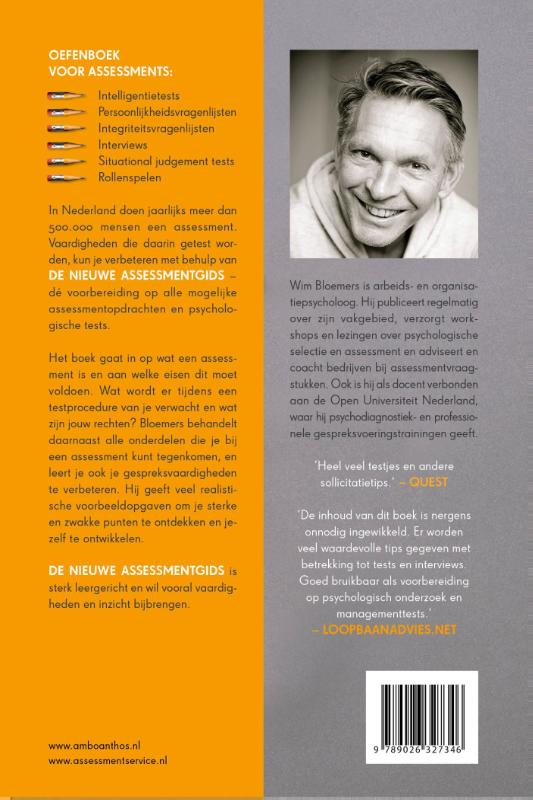In Nederland ondergaan enige honderdduizenden mensen jaarlijks een assessment. Met behulp van deze volledig herziene editie van De Nieuwe Assessmentgids kun je je voorbereiden op alle mogelijke psychologische tests, vragenlijsten en opdrachten die onderdeel uitmaken van een assessment. Ook bevat het boek het nieuwste overzicht over wat nu de ‘waarde’ is van assessmentinstrumenten en gedragsvoorspellers.