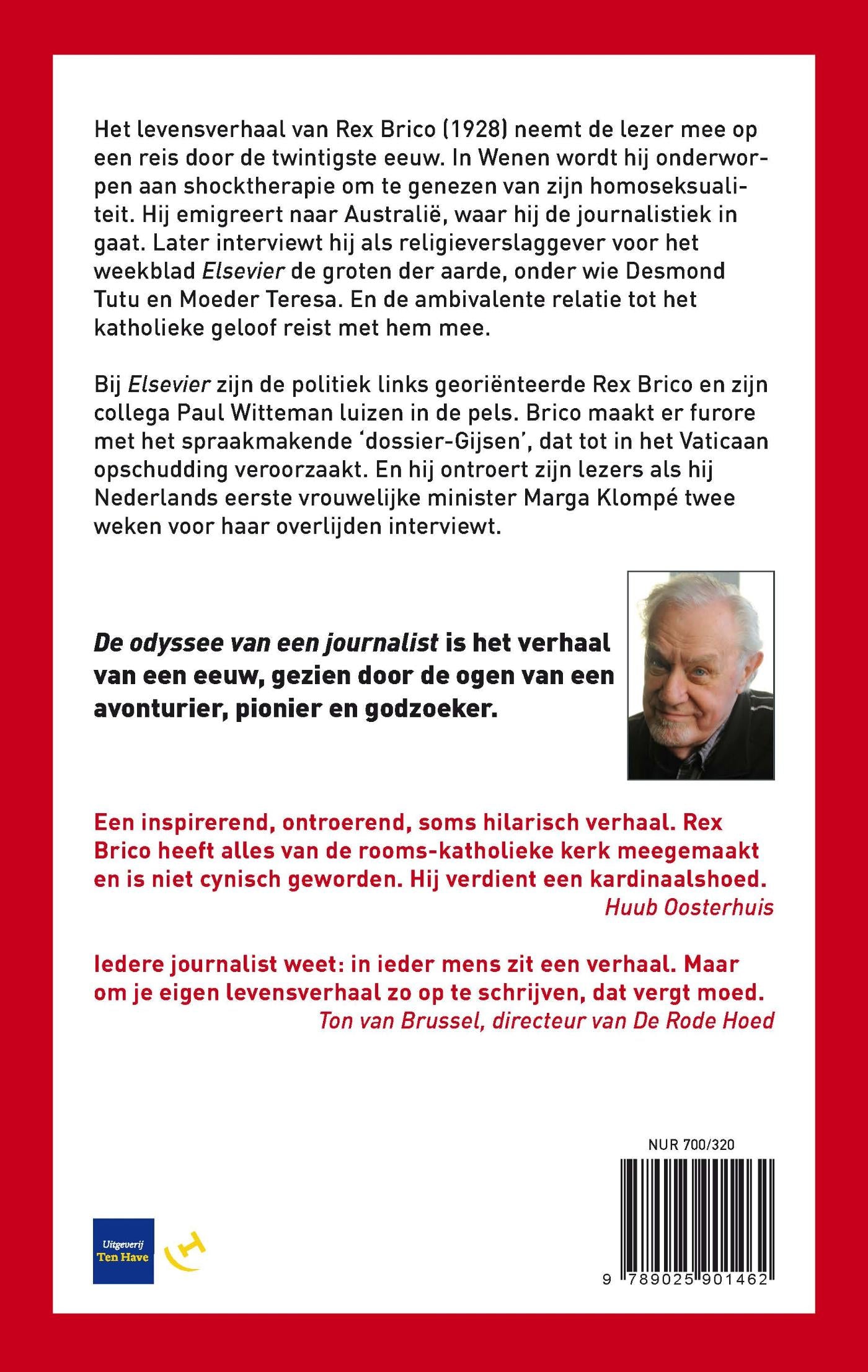 Indrukwekkend document over katholiek, journalistiek en homoseksueel Nederland. Aangrijpende biografie van een dappere man Zijn omslagverhaal voor Elsevier van 20 januari 1979 leidde tot het best verkochte nummer ooit. Het was een spraakmakend interview met bisschop Gijsen. Elsevier-redacteur Rex Brico (1928) sprak in de jaren '70 en '80 met iedereen die er in de christelijke wereld toe deed: Schillebeeckx, Moeder Teresa, Hans Küng, Marga Klompé, Desmond Tutu en Johannes Paulus II. Samen met Paul Witteman rebelleerde hij tegen het rechtse klimaat in de Elsevier-redactie. In Brico's avontuurlijke levensverhaal wisselen bespiegelingen over zijn persoonlijke en journalistieke ervaringen elkaar af. Als jong-volwassene was hij een vrome katholiek, die angstvallig zijn homoseksuele gevoelens verborgen hield. Toen dat door heftig liefdesverdriet niet meer lukte, sloeg hij ook als gelovige andere wegen in. Na zijn coming-out zette zijn familie hem op de trein naar Wenen. Daar kreeg hij na een mislukte zelfmoordpoging electroshocks toegediend. Brico's geaardheid werd in Oostenrijk gezien als psychiatrische aandoening. Behalve in Nederland was Brico als journalist werkzaam in Australië, Duitsland en Engeland. Na zijn pensionering bij Elsevier in 1990 was hij nog veertien jaar columnist van het Algemeen Dagblad. Intussen nam hij afscheid van het katholicisme, maar bleef een mystieke godzoeker, los van kerkelijke instituten.