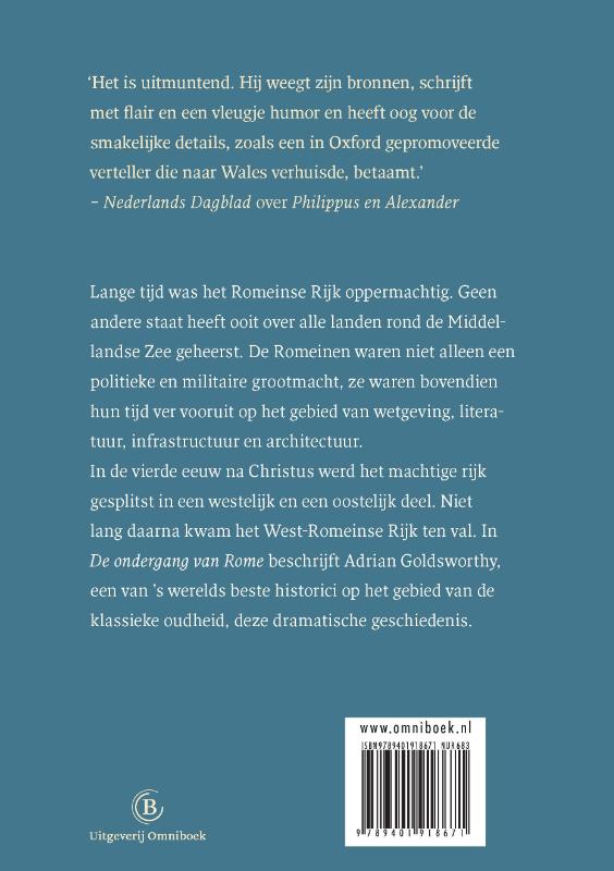 Lange tijd was het Romeinse Rijk oppermachtig, laat Adrian Goldsworthy zien in ‘De ondergang van Rome’. Geen andere staat heeft ooit over alle landen rond de Middellandse Zee geheerst. De Romeinen vormden niet alleen een politieke en militaire grootmacht, maar waren hun tijd ook ver vooruit op het gebied van wetgeving, literatuur, infrastructuur en architectuur. In de vierde eeuw werd het rijk gesplitst in een westelijk en een oostelijk deel. Niet lang daarna kwam het West-Romeinse Rijk ten val. Adrian Goldsworthy beschrijft in ‘De ondergang van Rome’ de dramatische geschiedenis van de ondergang van dit wereldrijk.
