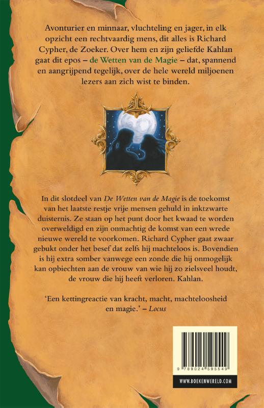 (POD) Avonturier en minnaar, vluchteling en jager, in elk opzicht een rechtvaardig mens, dit alles is Richard Cypher, de Zoeker. Over hem en zijn geliefde Kahlan gaat dit epos – de Wetten van de Magie – dat, spannend en aangrijpend tegelijk, over de hele wereld miljoenen aan zich wist te binden.