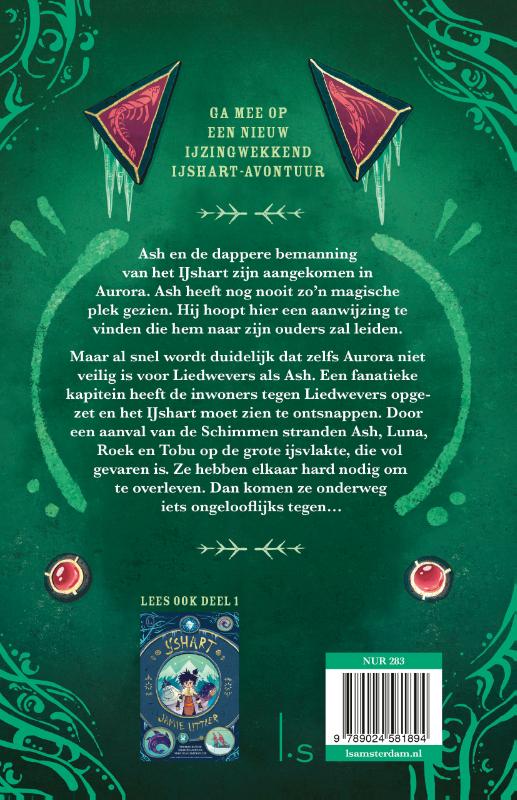 Ash en de dappere bemanning van het IJshart zijn aangekomen in Aurora. Ash heeft nog nooit zo’n mooie, buitengewone plek gezien. Hij hoopt hier een aanwijzing te vinden die hem naar zijn ouders zal leiden. Maar al snel wordt duidelijk dat Aurora niet veilig is voor Liedwevers als Ash. Een fanatieke kapitein heeft de stad tegen Liedwevers opgezet – en het duurt niet lang voor het IJshart een ontsnappingspoging moet wagen. Door een gevaarlijke aanval van de Schimmen stranden Ash, Luna, Roek en Tobu echter op de grote ijsvlakte, met alle gevaren van dien. Ze moeten al hun kracht en kennis bundelen om het er levend af te brengen. Dan komen ze onderweg iets ongelooflijks tegen…
