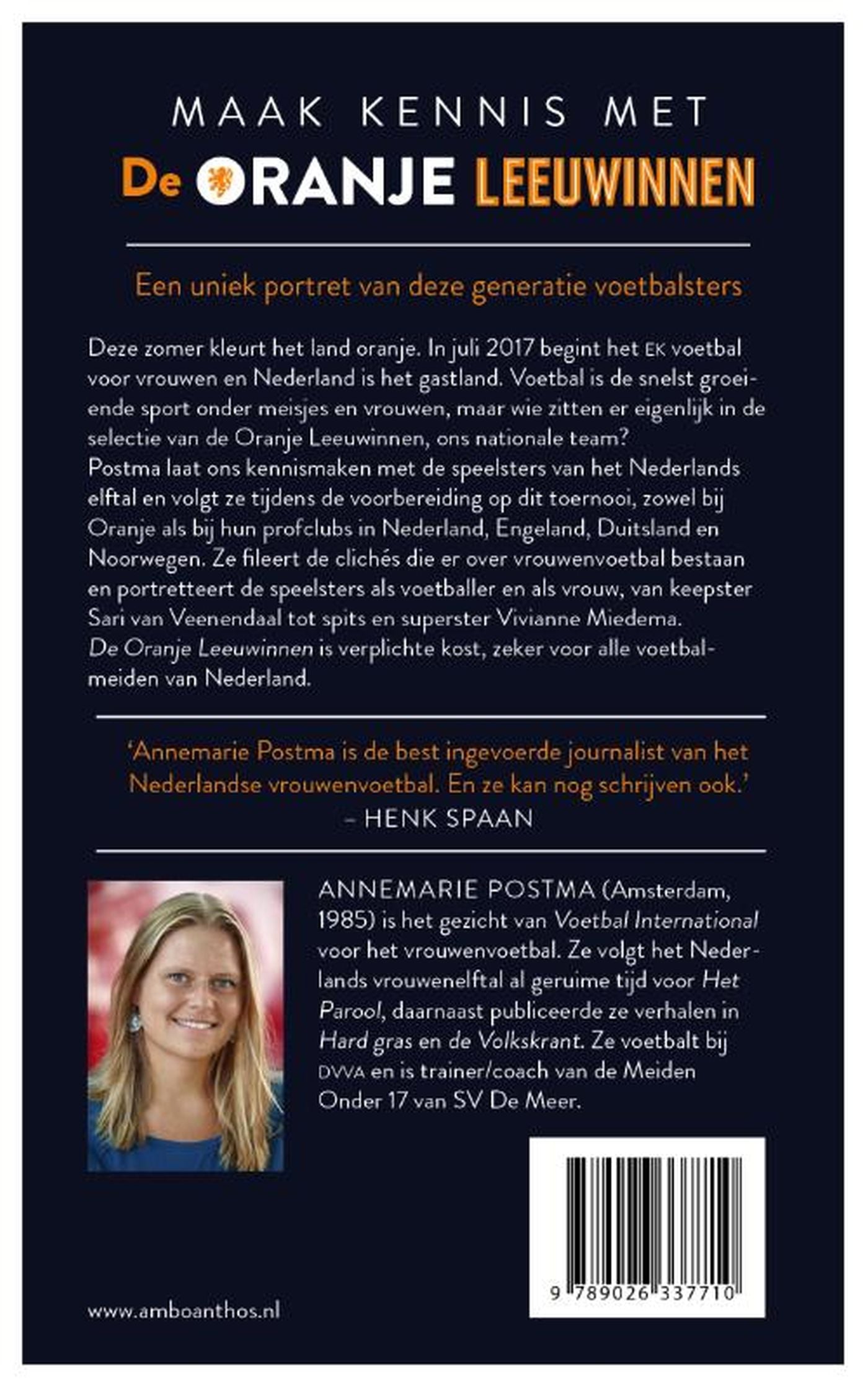 De pers over Annemarie Postma: - 'Annemarie Postma is de best ingevoerde journalist van het Nederlandse vrouwenvoetbal. En ze kan nog schrijven ook.' - Henk Spaan