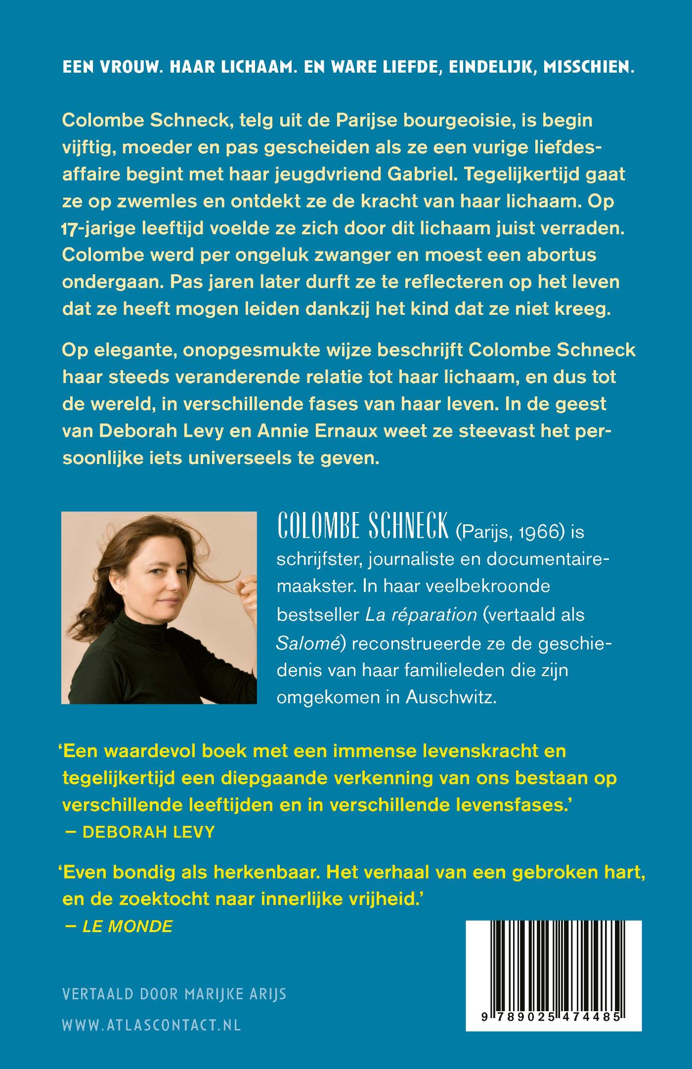 Op elegante, onopgesmukte wijze beschrijft Colombe Schneck haar steeds veranderende relatie tot haar lichaam, en dus tot de wereld, in verschillende fases van haar leven. In de geest van Deborah Levy en Annie Ernaux weet ze steevast het persoonlijke iets universeels te geven.