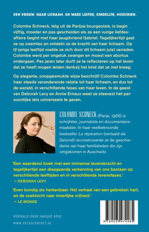 Op elegante, onopgesmukte wijze beschrijft Colombe Schneck haar steeds veranderende relatie tot haar lichaam, en dus tot de wereld, in verschillende fases van haar leven. In de geest van Deborah Levy en Annie Ernaux weet ze steevast het persoonlijke iets universeels te geven.