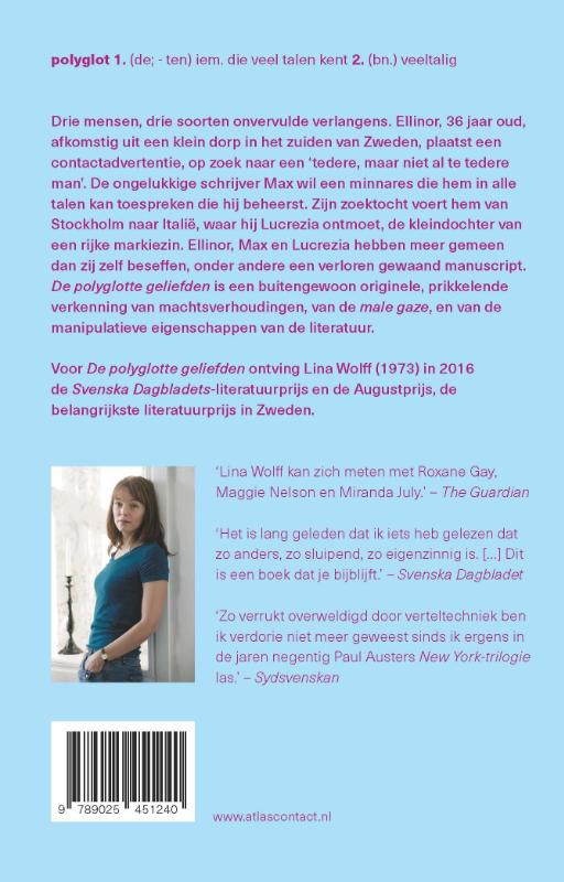 ‘De polyglotte geliefden’ is een buitengewoon originele, prikkelende verkenning van machtsverhoudingen, van de ‘male gaze’, en van de manipulatieve eigenschappen van de literatuur. Voor ‘De polyglotte geliefden’ ontving Lina Wolff in 2016 de Augustprijs, de belangrijkste literatuurprijs in Zweden.