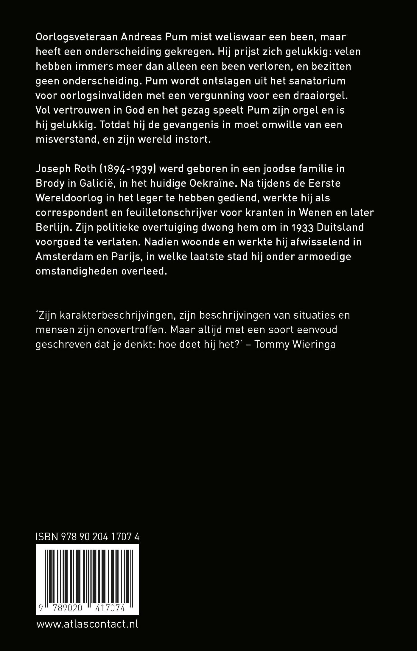 ‘Rebellie’ van Joseph Roth gaat over oorlogsveteraan Andreas Pum. Hij mist weliswaar een been, maar heeft een onderscheiding gekregen. Hij prijst zich gelukkig: velen hebben immers meer dan alleen een been verloren, en bezitten geen onderscheiding. Pum wordt ontslagen uit het sanatorium voor oorlogsinvaliden met een vergunning voor een draaiorgel. Vol vertrouwen in God en het gezag speelt Pum zijn orgel en is hij gelukkig. Totdat hij de gevangenis in moet omwille van een misverstand, en zijn wereld instort.