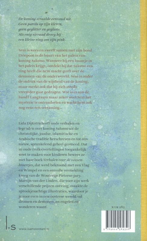 Hervertelling over de ring van koning Salomo door Lida Dijkstra, die eerder met Verhalen voor de vossenbroertjes een Vlag en Wimpel won. Martijn van der Linden maakte de prachtige illustraties.
