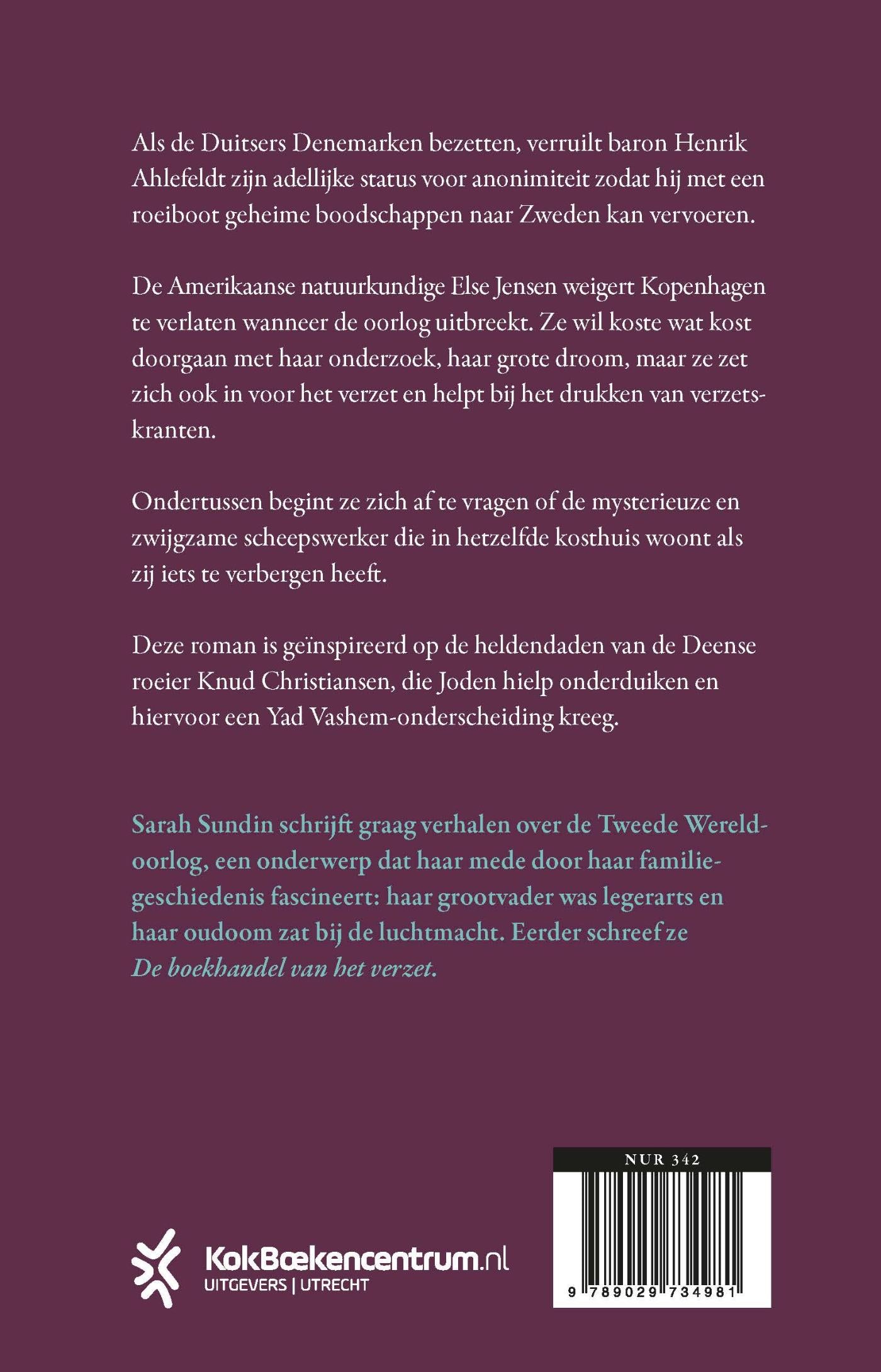 ‘De roeier van Kopenhagen’ van Sarah Sundin speelt zich af in Denemarken ten tijde van de Tweede Wereldoorlog. De Amerikaanse natuurkundige Else Jensen weigert Kopenhagen te verlaten wanneer de oorlog uitbreekt. Ze maakt deel uit van het verzet door illegale kranten af te drukken. Als ze verhalen hoort over de legendarische Havmand, de Zeemeerman, vraagt ze zich af of de mysterieuze scheepswerfarbeider, die bij haar in het pension woont, iets te verbergen heeft. Ze gaat samenwerken met Baron Henrik Ahlefeldt, die zijn adellijke status heeft ingeruild voor anonimiteit om met een roeiboot geheime boodschappen naar Zweden te vervoeren.