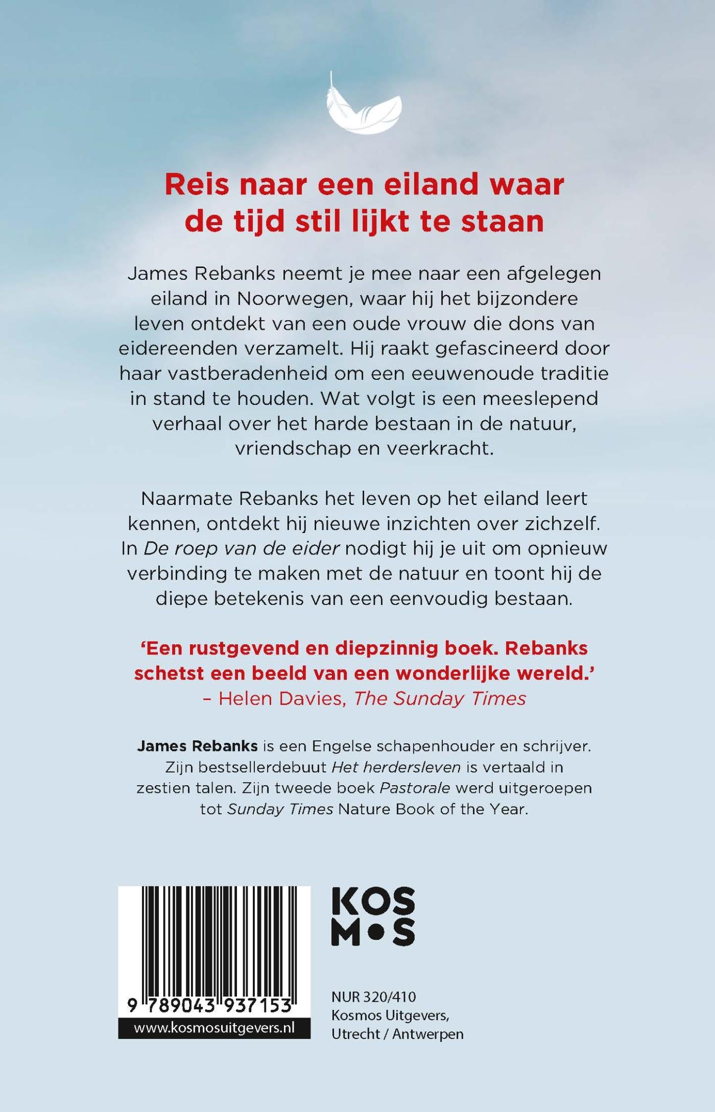 Jaren geleden ontmoette James Rebanks een oude vrouw die in haar eentje op een Noors eiland woonde, waar ze eiderdons verzamelde. Rebanks was onder de indruk van haar solitaire bestaan en haar vastberadenheid om een eeuwenoude traditie in stand te houden. In De roep van de eider keert Rebanks terug naar Noorwegen. Wat volgt is een meeslepend verhaal over het harde bestaan in de natuur, over vriendschap en over Rebanks’ persoonlijke zoektocht naar rust.