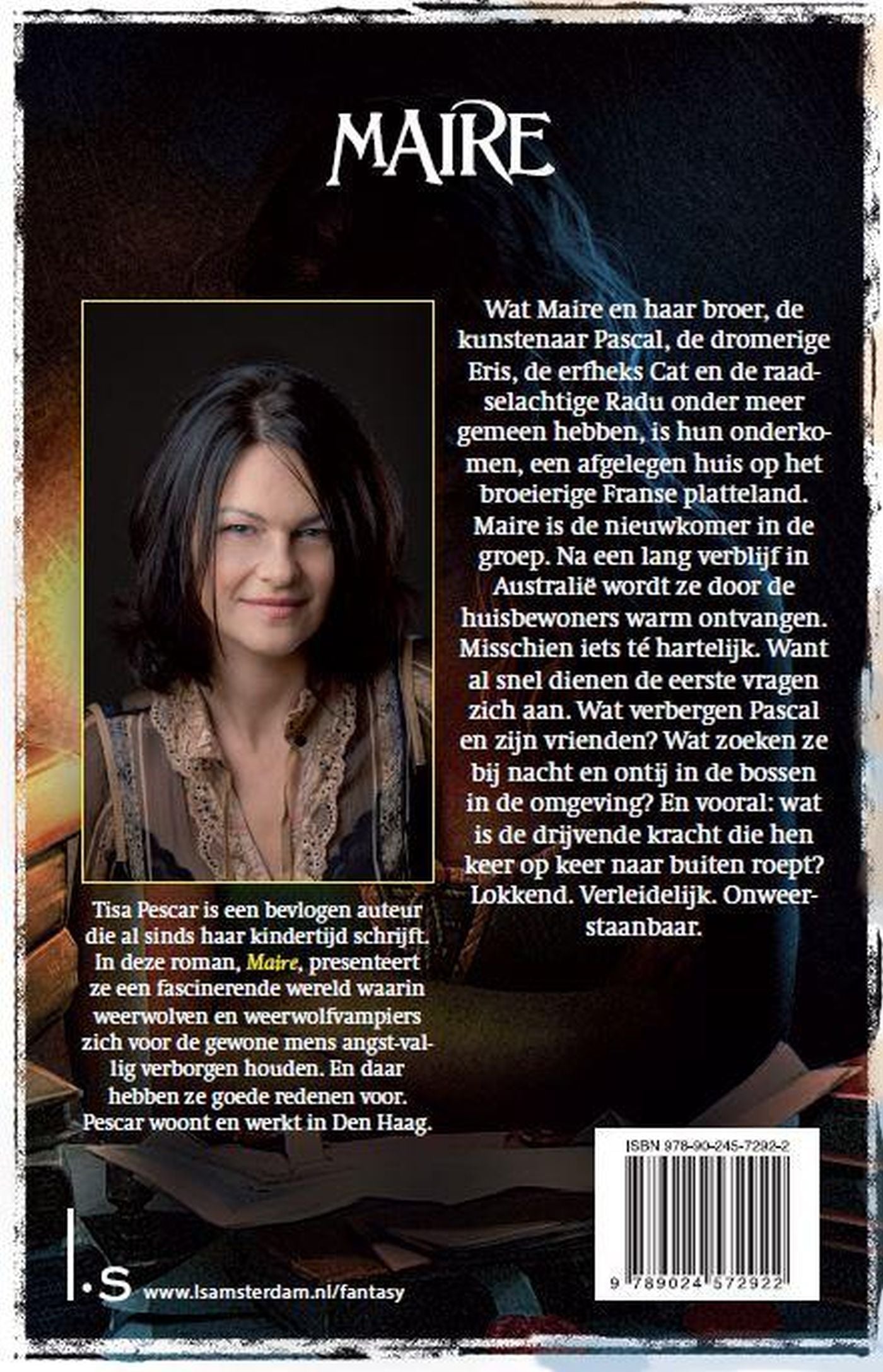 Tisa Pescar is een bevlogen auteur die al sinds haar kindertijd schrijft. In Maire duikt ze in de geschiedenis van een fascinerende wereld waarin weerwolven en weerwolfvampiers zich voor de gewone mens angstvallig verborgen houden. En daar hebben ze goede redenen voor. Pescar woont en werkt in Den Haag.