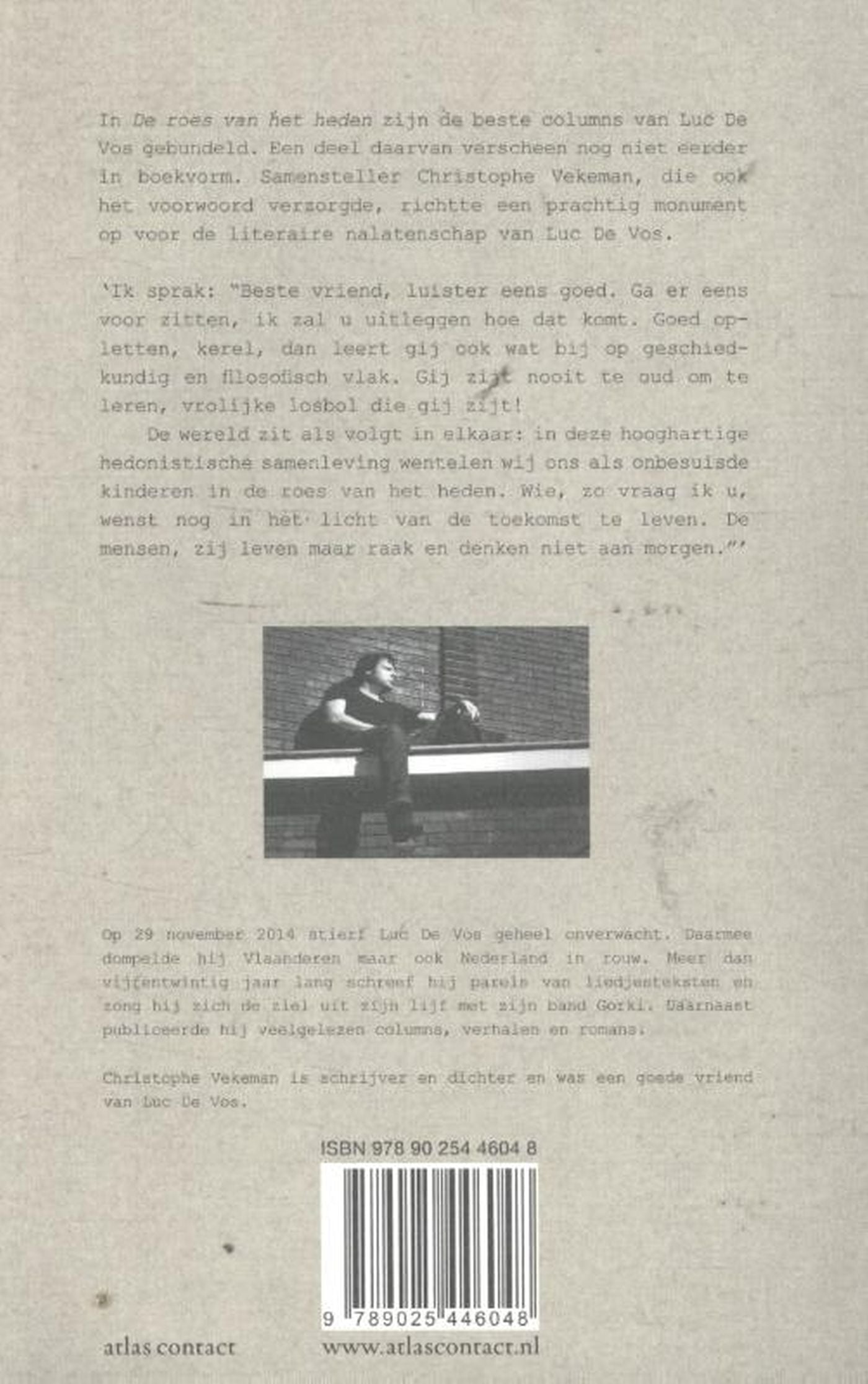 In 'De roes van het heden' zijn de beste columns van Luc De Vos gebundeld. Een deel daarvan verscheen nog niet eerder in boekvorm. Samensteller Christophe Vekeman, die ook het voorwoord verzorgde, richtte een prachtig monument op voor de literaire nalatenschap van Luc De Vos.