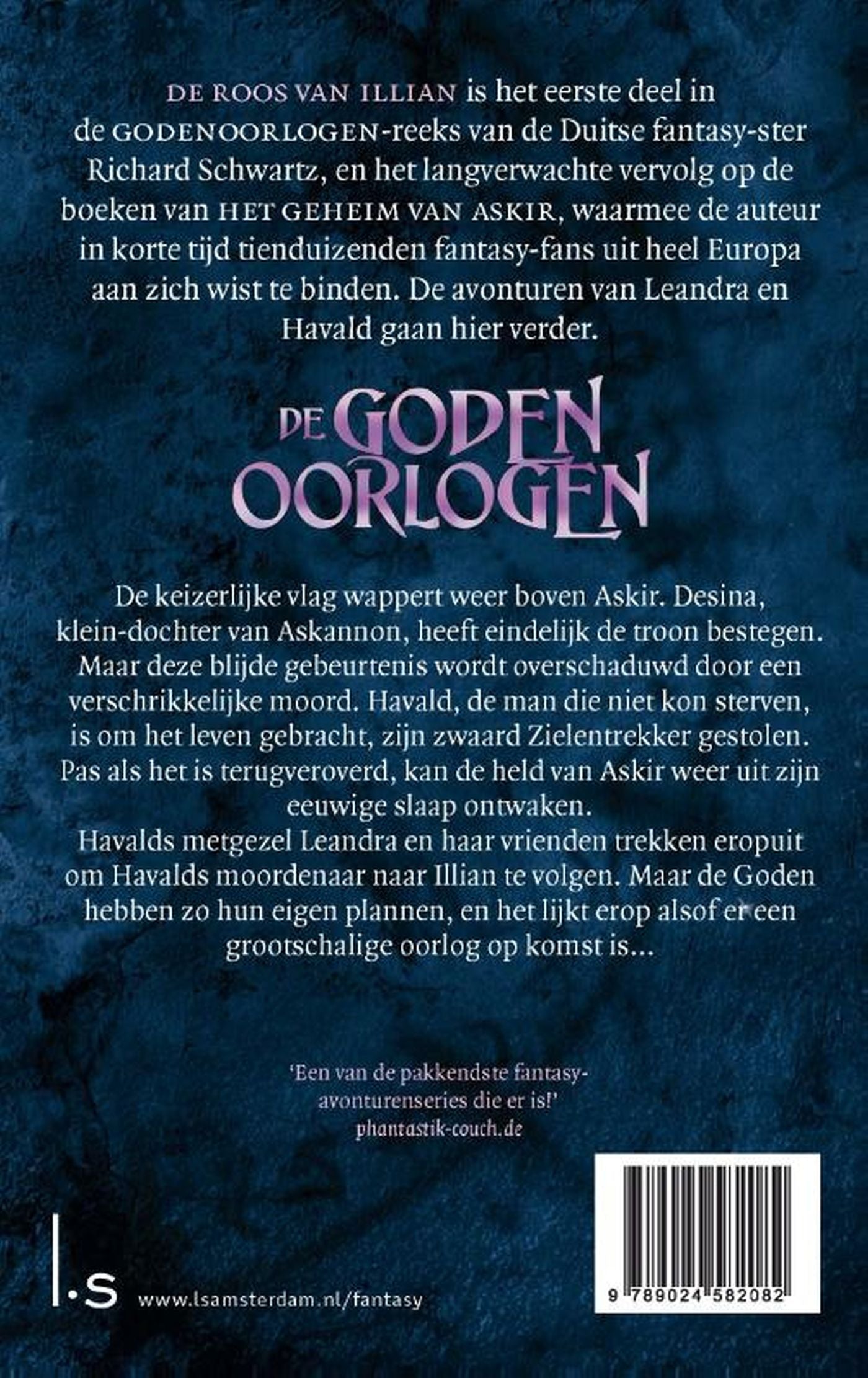 De Roos van Illian is het eerste deel in de Godenoorlogen-reeks van de Duitse fantasy-ster Richard Schwartz, en het langverwachte vervolg op de boeken van Het Geheim van Askir, waarmee de auteur in korte tijd tienduizenden fantasy-fans uit heel Europa aan zich wist te binden. De avonturen van Leandra en Havald gaan hier verder.