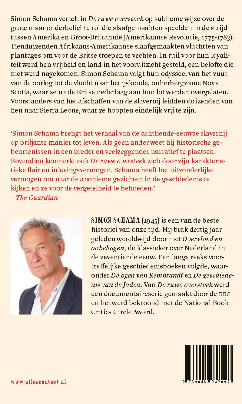 Simon Schama vertelt in De ruwe oversteek op sublieme wijze over de grote maar onderbelichte rol die slaafgemaakten speelden in de strijd tussen Amerika en Groot-Brittannië (Amerikaanse Revolutie, 1775-1783). Tienduizenden Afrikaans-Amerikaanse slaafgemaakten vluchtten van plantages om voor de Britse troepen te vechten. In ruil voor hun loyaliteit werd hen vrijheid en land in het vooruitzicht gesteld, een belofte die niet werd nagekomen. Simon Schama volgt hun odyssee, van het vuur van de oorlog tot de vlucht naar het ijskoude, onherbergzame Nova Scotia, waar ze na de Britse nederlaag aan hun lot werden overgelaten. Voorstanders van het afschaffen van de slavernij leidden duizenden van hen naar Sierra Leone, waar ze hoopten eindelijk vrij te zijn.