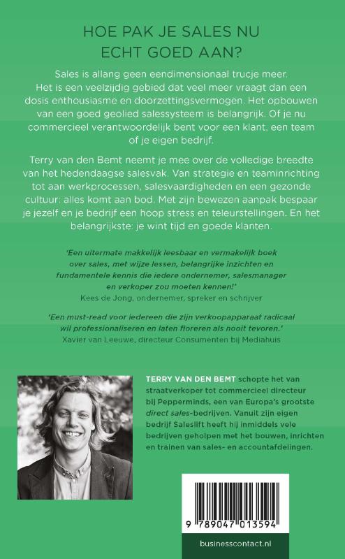 Terry van den Bemt legt in ‘De Sales Architect’ uit hoe je sales nu echt goed aanpakt. Sales is allang geen eendimensionaal trucje meer. Het is een veelzijdig gebied dat veel meer vraagt dan een dosis enthousiasme en doorzettingsvermogen. Het opbouwen van een goed geolied salessysteem is belangrijk. Of je nu commercieel verantwoordelijk bent voor een klant, een team of je eigen bedrijf.