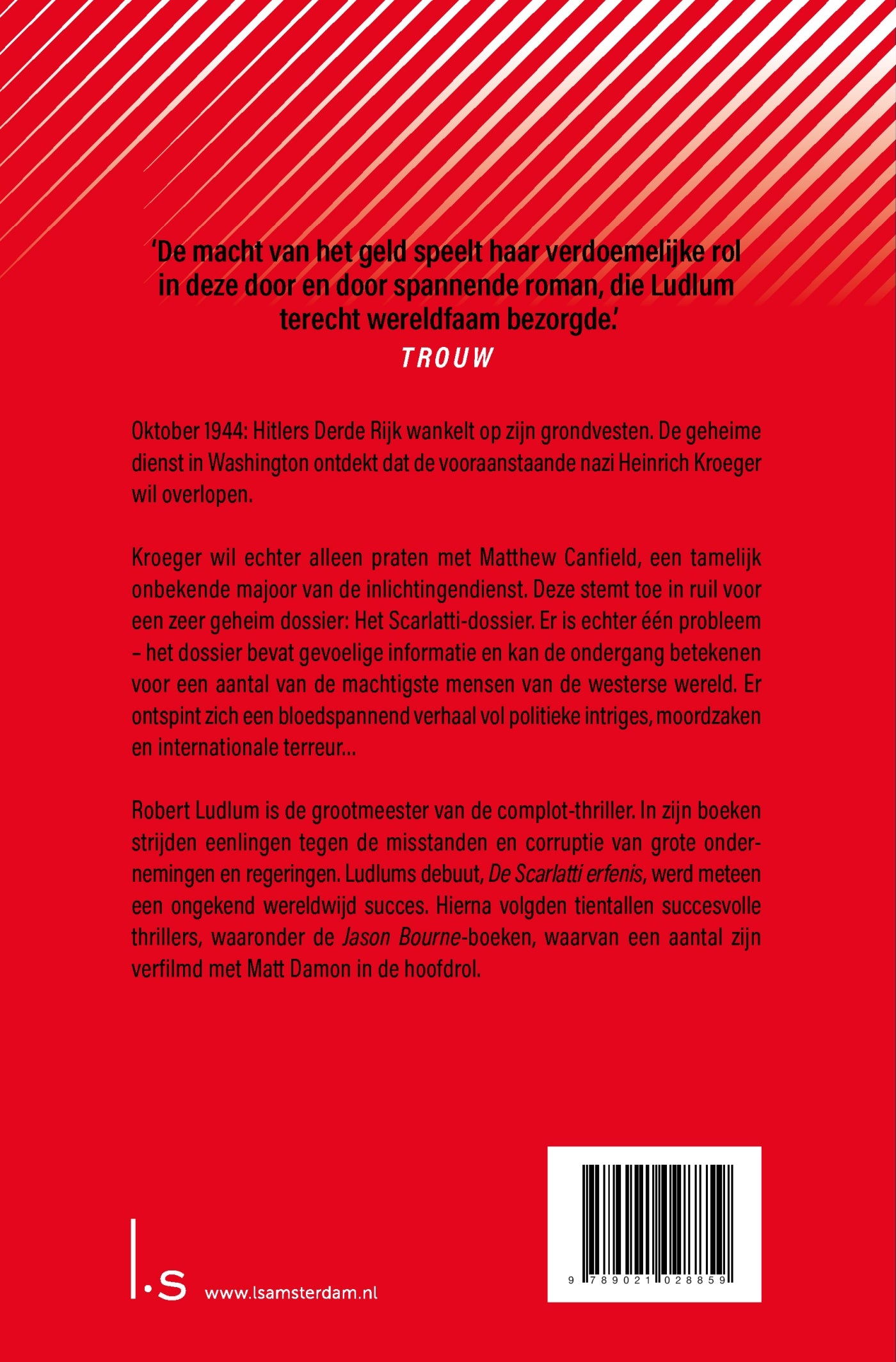 Robert Ludlum is de grootmeester van de complot-thriller. In zijn boeken strijden eenlingen tegen misstanden en de corruptie van grote ondernemingen en regeringen. Ludlums debuut, De Scarlatti erfenis, werd meteen een ongekend wereldwijd succes. Hierna volgden tientallen succesvolle thrillers, waaronder de Jason Bourne-boeken, waarvan een aantal zijn verfilmd met Matt Damon in de hoofdrol.