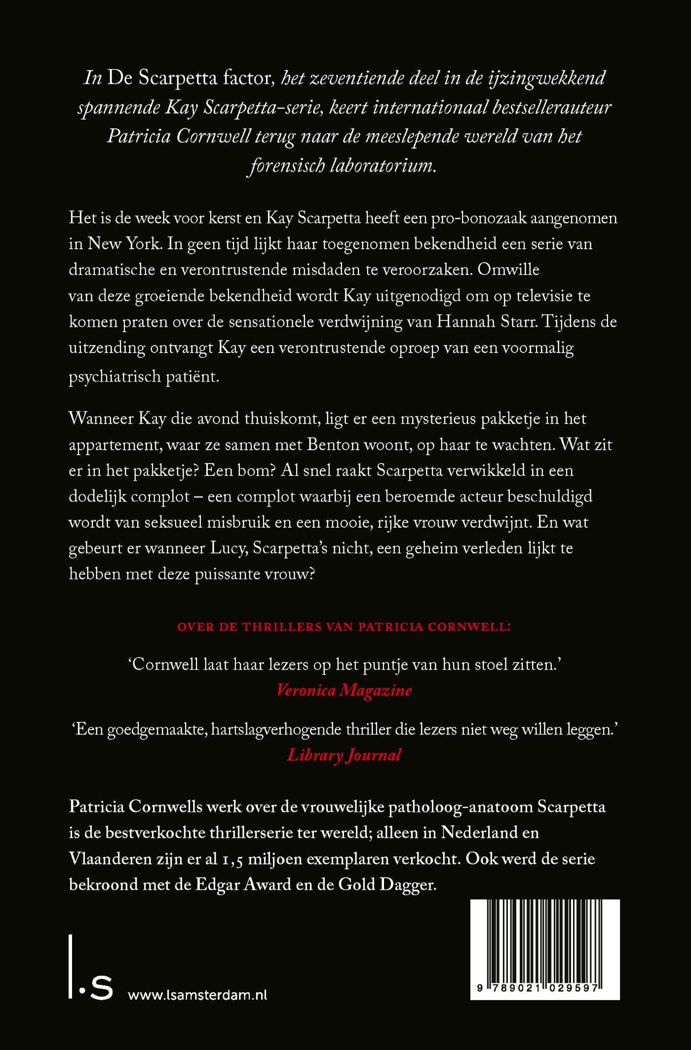 (POD) De Scarpetta factor is het zeventiende boek uit de bloedstollende bestsellerserie rond patholoog-anatoom Kay Scarpetta van auteur Patricia Cornwell. Deze serie betekende Patricia Cornwells doorbraak als grondlegger van de pathologisch-anatomische thriller.