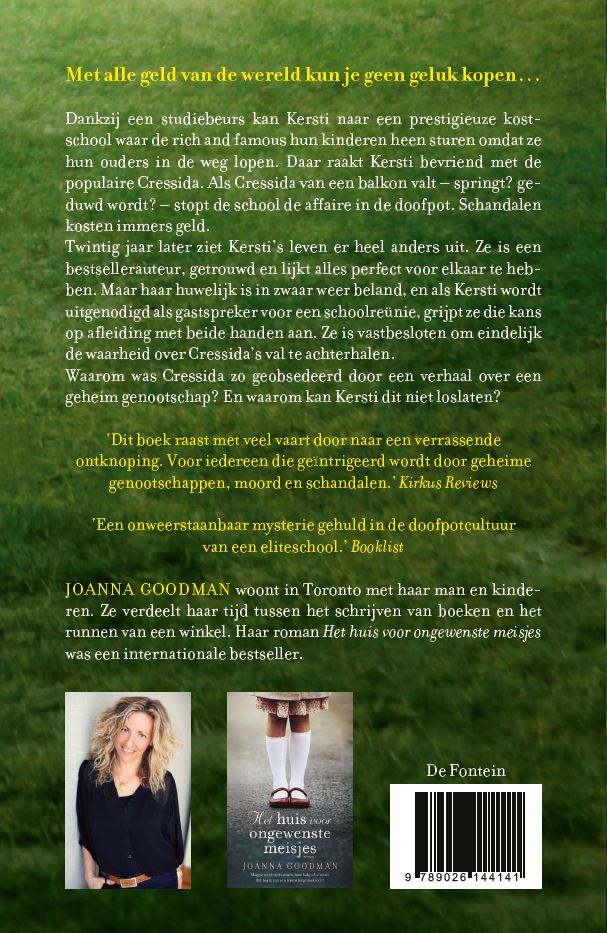 Twintig jaar later organiseert de school een reünie en nodigt bestsellerauteur Kersti uit als gastspreker. Kersti grijpt deze kans aan om de waarheid over Cressida’s val te achterhalen. Waarom was Cressida zo geobsedeerd door de geruchten en verhalen over een geheim genootschap op deze school? Waarom kan Kersti dit niet loslaten? En hoeveel is ze bereid op het spel te zetten in haar zoektocht naar antwoorden?