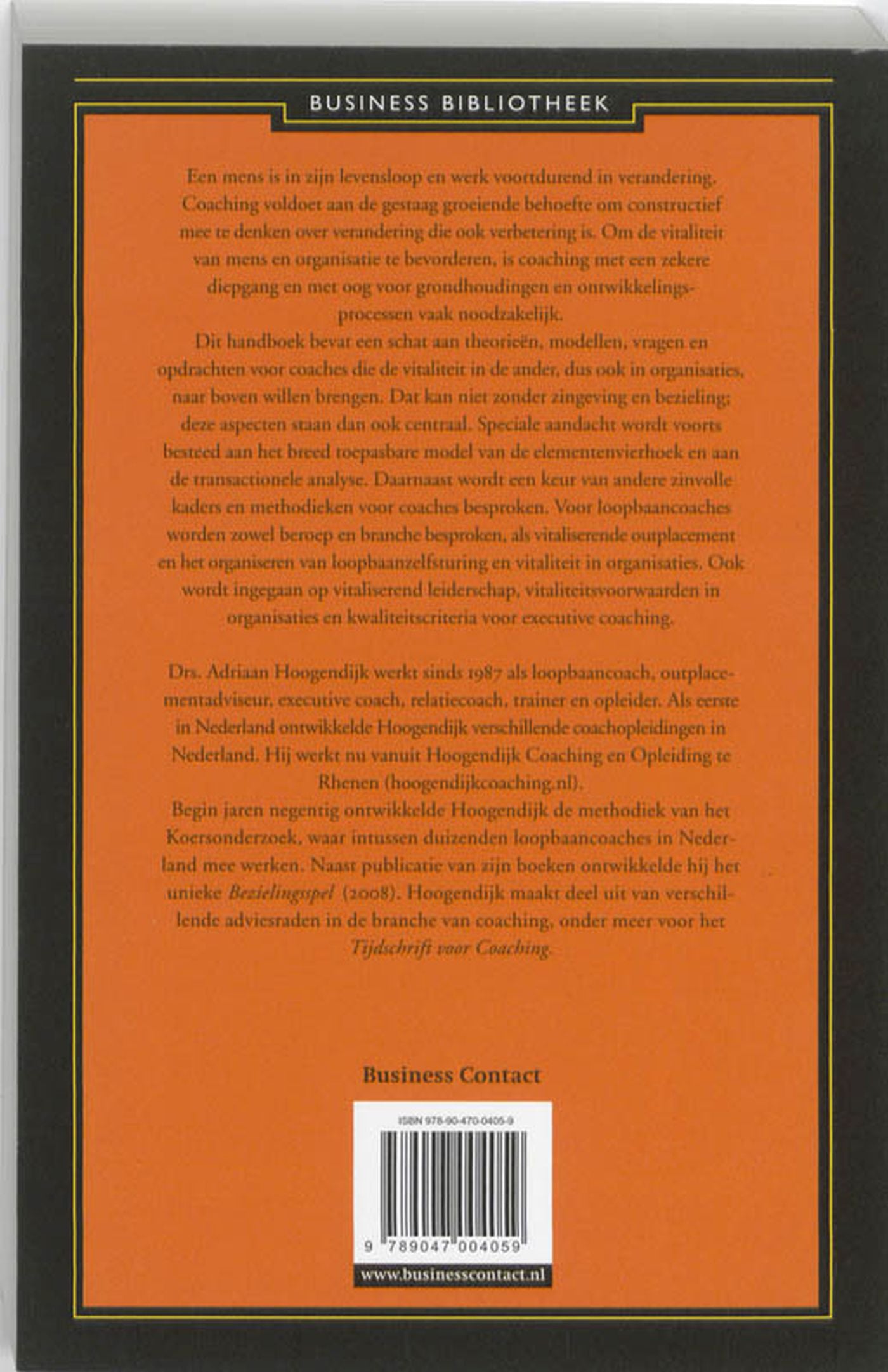 Bezielend coachen van Adriaan Hoogendijk bevat een schat aan theorieën, modellen, vragen en opdrachten voor beginnende en gevorderde coaches. Coaching voldoet aan de behoefte van mensen in alle lagen van een organisatie om actief te werken aan verandering die ook verbetering is. Maar om de vitaliteit van mens en organisatie te bevorderen, is coaching met diepgang en met oog voor grondhoudingen en ontwikkelingsprocessen essentieel. Hoogendijk is de expert op dit gebied. Bezielend coachen behandelt alle aspecten die een professionele coach anno nu moet kennen en beheersen.