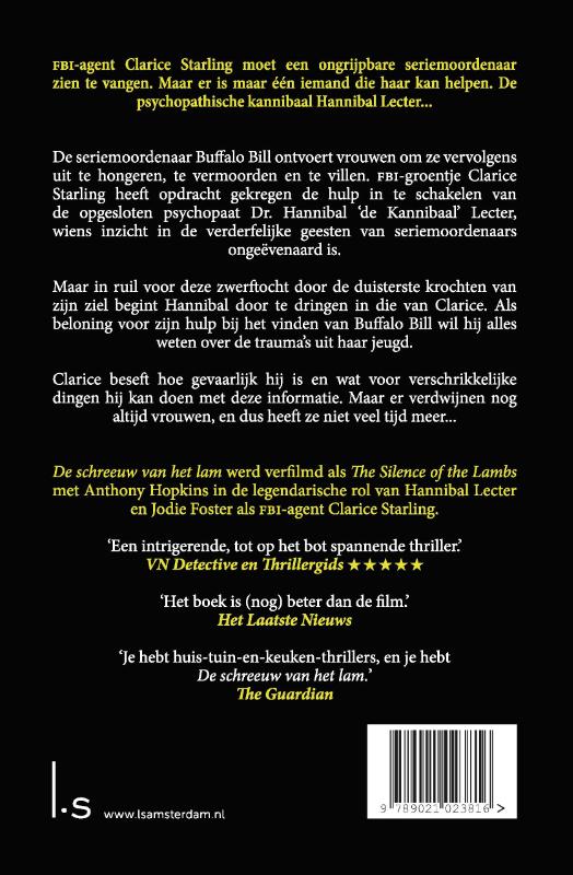 De schreeuw van het lam is de tweede thriller van Thomas Harris met de legendarische seriemoordenaar Hannibal Lecter in de hoofdrol.