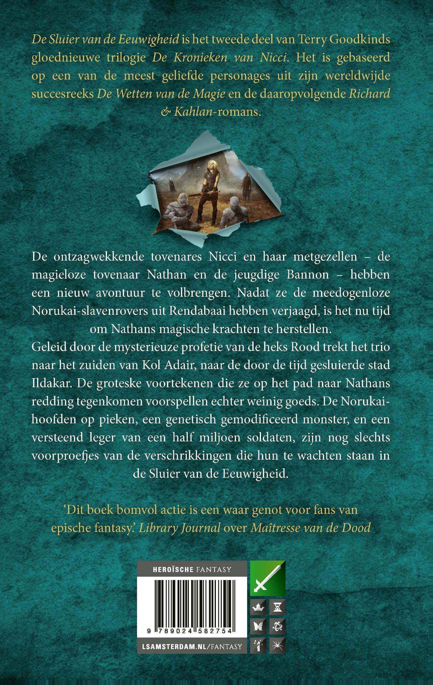 De Sluier van de Eeuwigheid is het tweede deel van Terry Goodkinds gloednieuwe trilogie De Kronieken van Nicci. Het is gebaseerd op een van de geliefdste personages uit zijn wereldwijde succesreeks De Wetten van de Magie en de daaropvolgende Richard & Kahlan-romans.