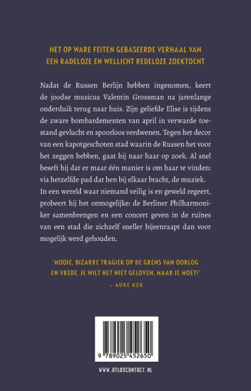 In een wereld waar niemand veilig is en geweld regeert, probeert hij het onmogelijke: de Berliner Philharmoniker samenbrengen en een concert geven in de ruïnes van een stad die zichzelf sneller bijeenraapt dan voor mogelijk werd gehouden.