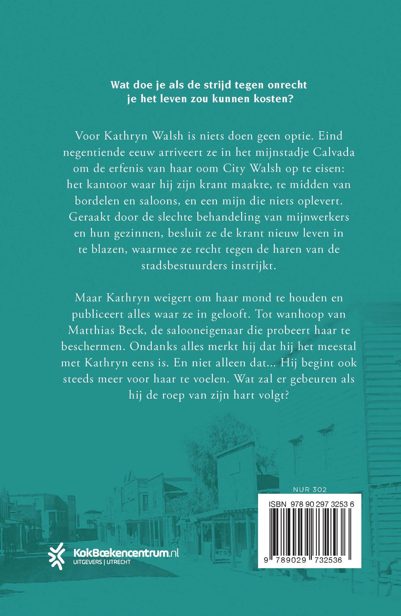 Voor Kathryn is niets doen echter geen optie. Eind 19e eeuw arriveert ze in het mijnstadje Calvada om haar ooms erfenis op te eisen: het kantoor waar hij zijn krant maakte, te midden van bordelen en saloons, en een mijn die niets oplevert. Geraakt door de slechte behandeling van mijnwerkers en hun gezinnen, besluit ze het krantje nieuw leven in te blazen. Daarmee strijkt ze recht tegen de haren in van de mannen die het stadje besturen. Maar Kathryn weigert om haar mond te houden en publiceert alles waar ze in gelooft. Tot wanhoop van Matthias Beck, de salooneigenaar die haar probeert te beschermen.