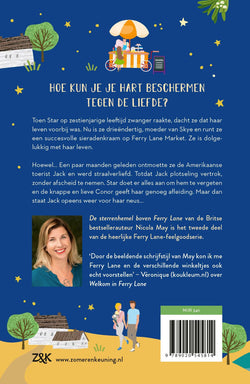 Toen Star, de hoofdpersoon in 'De sterrenhemel boven Ferry Lane' van Nicola May, op zestienjarige leeftijd zwanger raakte, dacht ze dat haar leven over was. Nu is ze drieëndertig, moeder van Skye en de eigenaar van de succesvolle sieradenkraam op Ferry Lane Market en is ze dolgelukkig met haar leven. Hoewel... Een paar maanden geleden ontmoette ze de Amerikaanse toerist Jack en Star durfde eindelijk haar hart weer open te stellen voor de liefde. Totdat Jack plotseling vertrok, zonder afscheid te nemen. Star doet er alles aan om hem te vergeten en de knappe en lieve Conor geeft haar wat afleiding. Maar dan staat Jack opeens weer voor haar neus... 'De sterrenhemel boven Ferry Lane' van Nicola May is het tweede deel van de hilarische Ferry Lane-feelgoodserie.